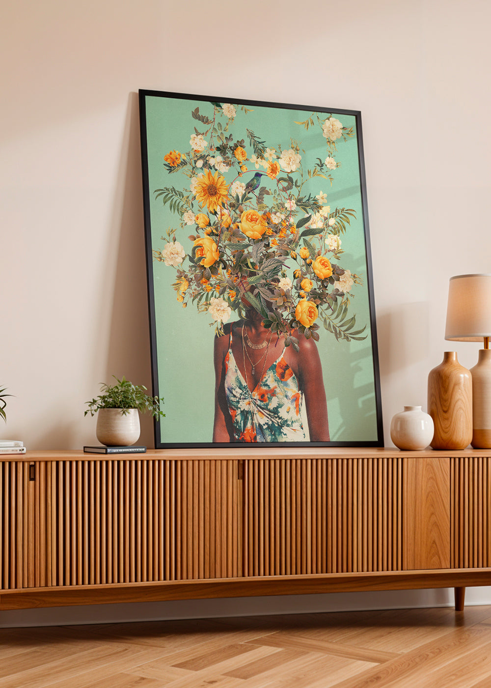 Dieses Kunstwerk aus unserer Kunstauswahl wandbild mit frau, des Kreativschöpfers Frank Moth, mit Nuancen Grün, und mit Bildposition Vertikal. Ein Vintage-Poster ist ein schönes Deko-Element für jedes Zimmer. Richte deine eigene, inspirierende Kunstecke ein.
