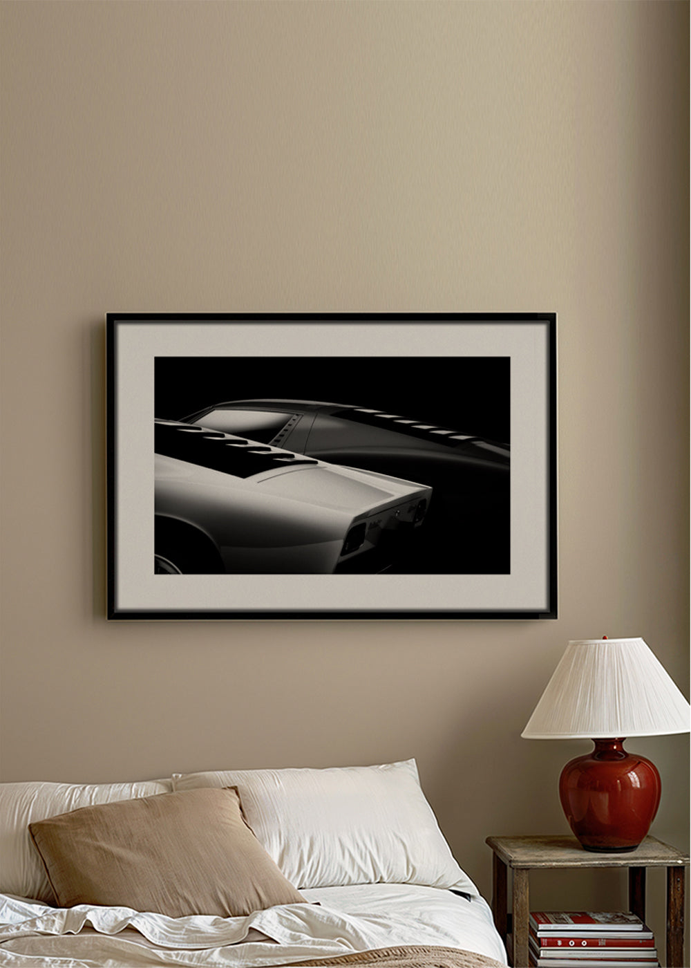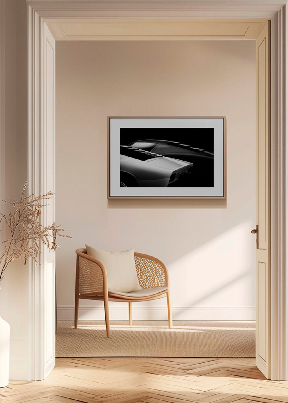 Ein Poster aus der Kollektion von auto-poster und bilder mit auto-motiven, Künstlern 1x, mit Farbtönen schwarz-weiß, und mit Ausrichtung Horizontal. Dieses Foto zieht garantiert alle Blicke auf sich. Verleihe deinen Zimmern mit Kunst einen neuen Look. Weiß gerahmte Bilder kommen besonders gut zum Ausdruck.