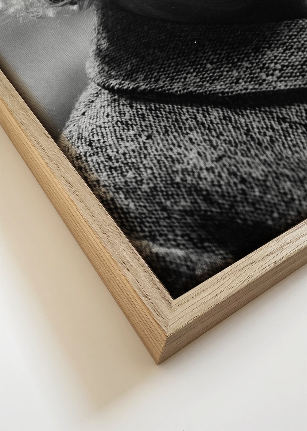 Alle unsere Rahmen werden in Spanien hergestellt. Die weißen, schwarzen und Eichenrahmen sind aus Ayous-Holz gefertigt, und die Eichenrahmen sind mit Eiche furniert, während die metallischen Rahmen aus Aluminium sind.