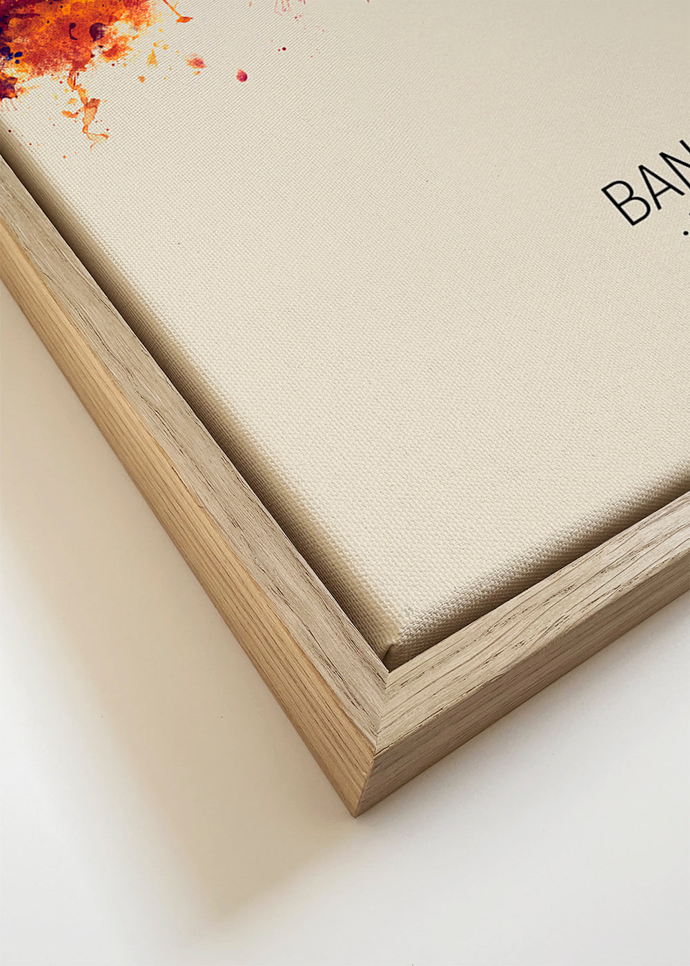 Wenn Sie die Passepartout-Option wählen, fügen wir die weiße matte Platte dem Rahmen hinzu und reduzieren das Design der Arbeit. Wählen Sie beispielsweise ein Druckformat 50x70 cm, mit eichenfarbenem Rahmen und Passepartout, reduzieren wir das Design des Druckes auf das bisherige Format (40x50cm). So passt es sich perfekt an das Innenfenster des Passepartouts an.
