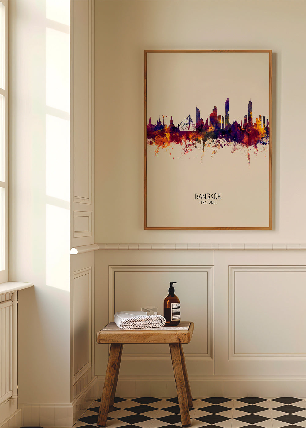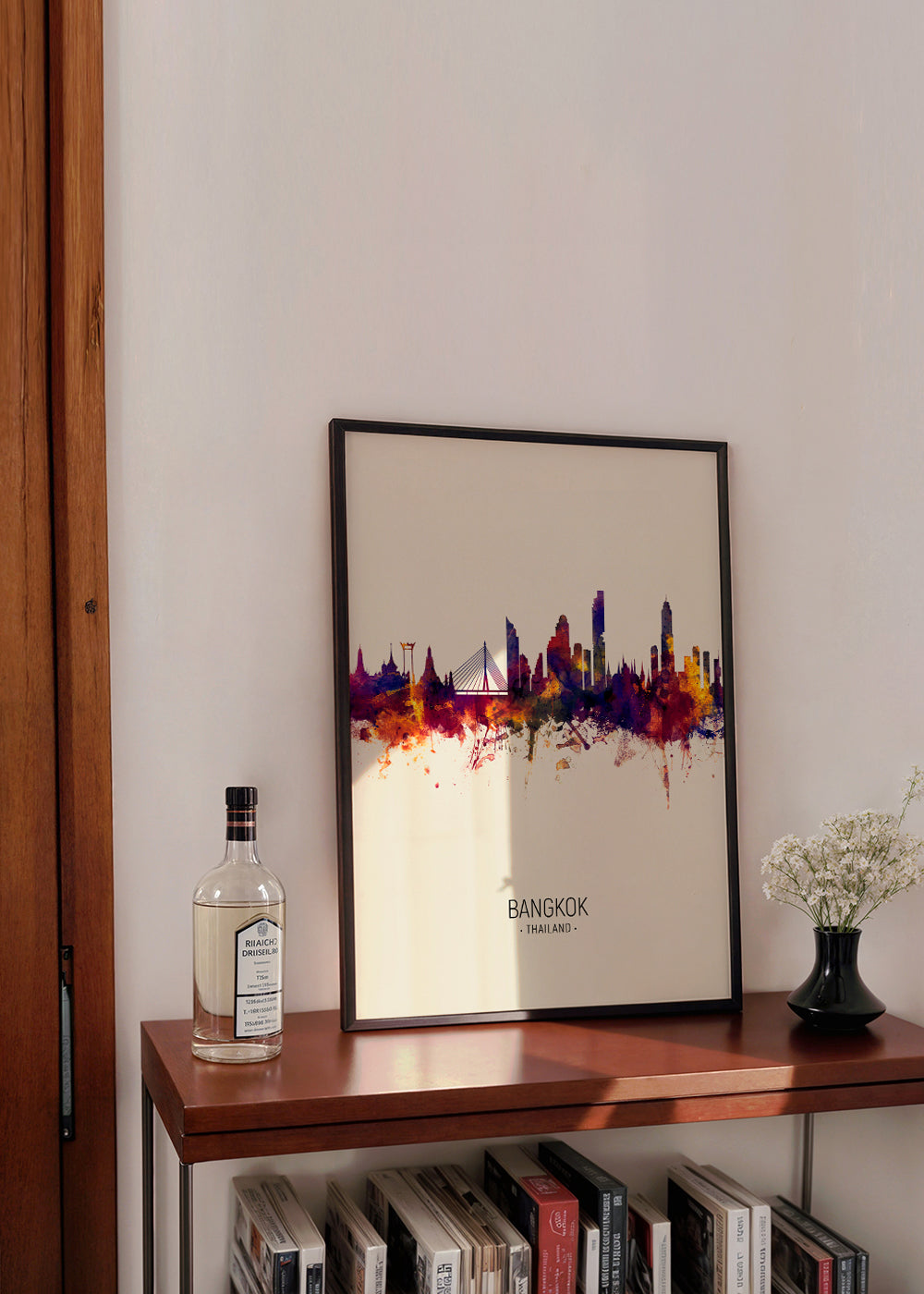 Poster in Schwarz-Weiß Bangkok Skyline beige