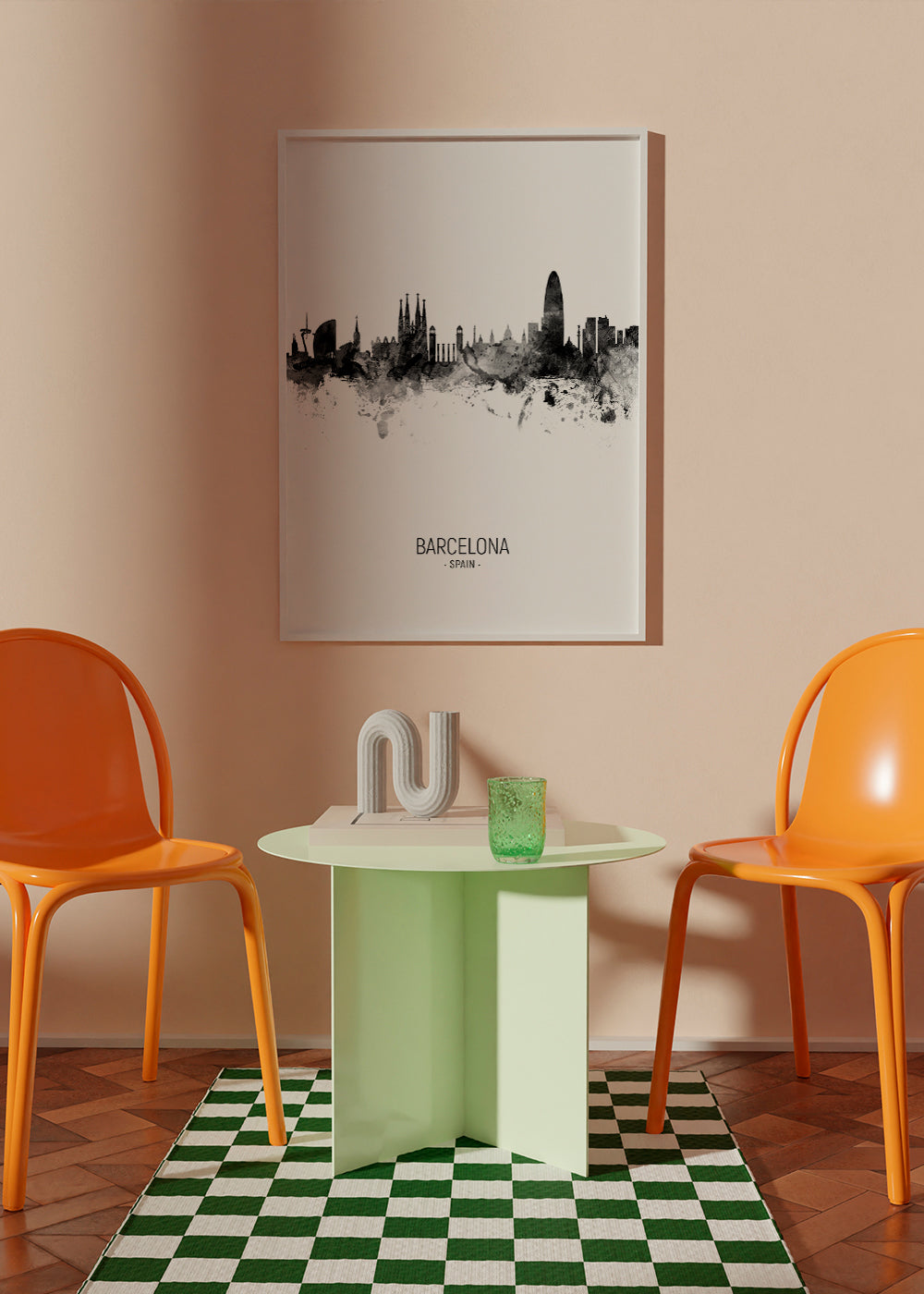 Poster in Schwarz-Weiß Barcelona Skyline black and white