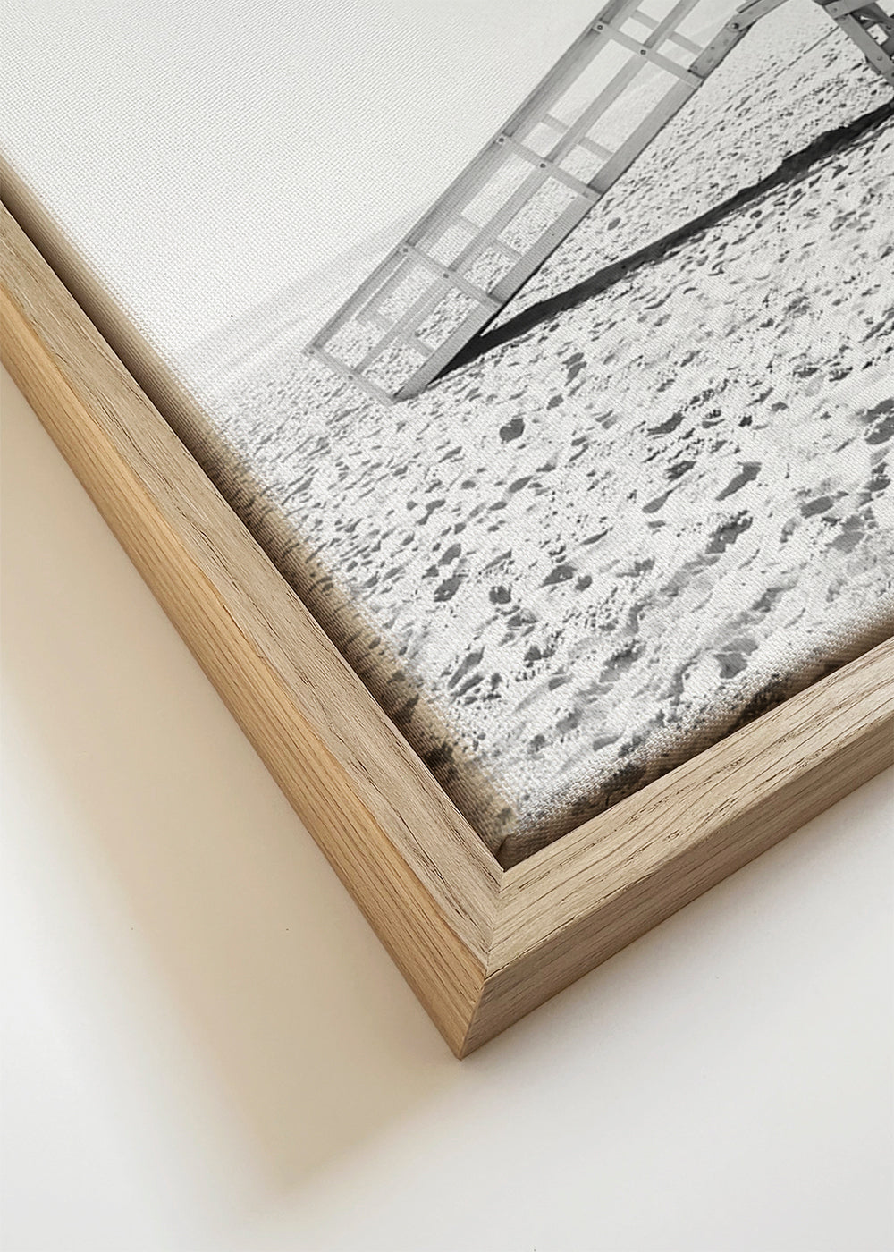 Alle unsere Rahmen werden in Spanien hergestellt. Die weißen, schwarzen und Eichenrahmen sind aus Ayous-Holz gefertigt, und die Eichenrahmen sind mit Eiche furniert, während die metallischen Rahmen aus Aluminium sind.