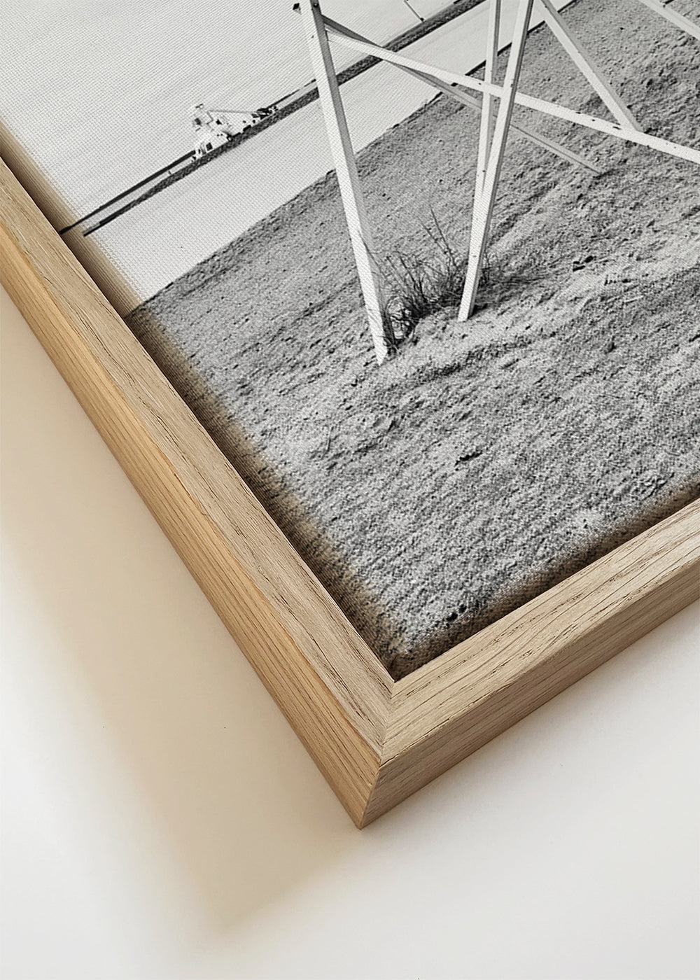 Alle unsere Rahmen werden in Spanien hergestellt. Die weißen, schwarzen und Eichenrahmen sind aus Ayous-Holz gefertigt, und die Eichenrahmen sind mit Eiche furniert, während die metallischen Rahmen aus Aluminium sind.