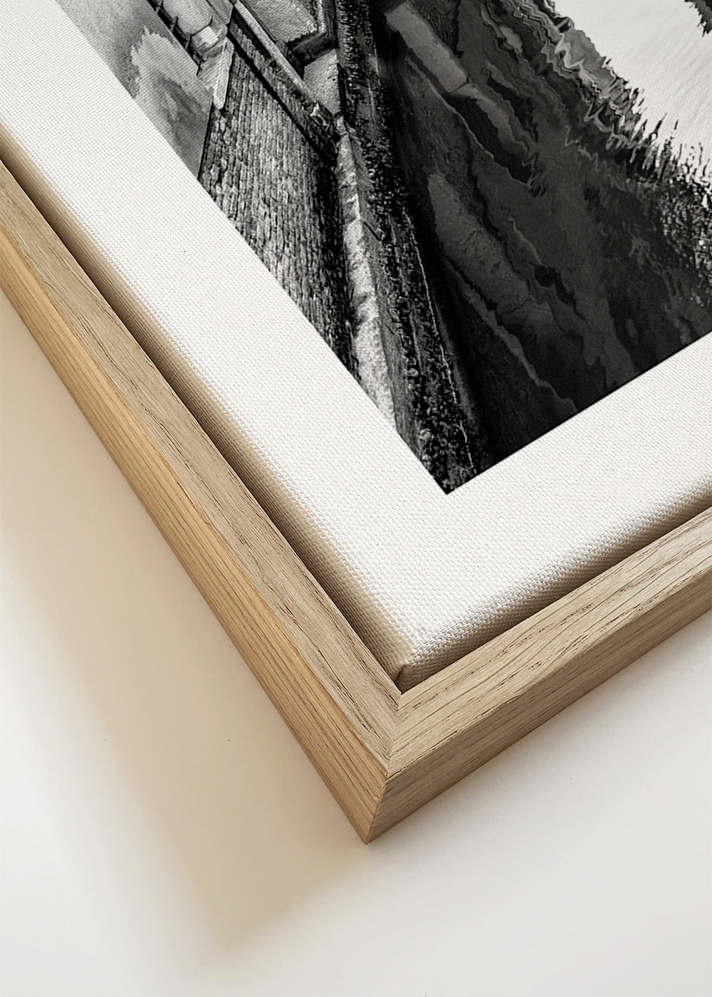 Wenn Sie die Passepartout-Option wählen, fügen wir die weiße matte Platte dem Rahmen hinzu und reduzieren das Design der Arbeit. Wählen Sie beispielsweise ein Druckformat 50x70 cm, mit eichenfarbenem Rahmen und Passepartout, reduzieren wir das Design des Druckes auf das bisherige Format (40x50cm). So passt es sich perfekt an das Innenfenster des Passepartouts an.