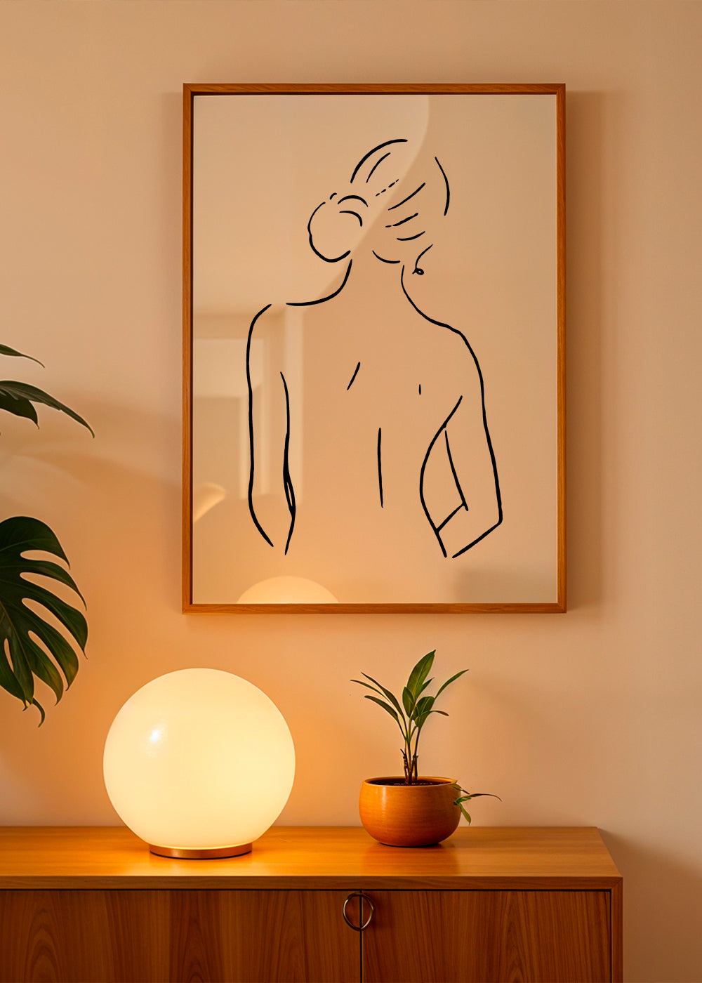 Dieses Kunstwerk aus unserer Kunstauswahl body-bilder und körperformen-kunstdrucke, Originalbild von Nouveau Prints, mit Farbnuance Schwarz-weiß, und geeignet für Bildpositionen Vertikal. Wandbilder mit Illustrationen lassen sich gut mit Kunst im minimalistischen und abstrakten Stil kombinieren. Es gibt weder schöne noch hässliche Wände – es gibt nur dekorierte und leere Wände.