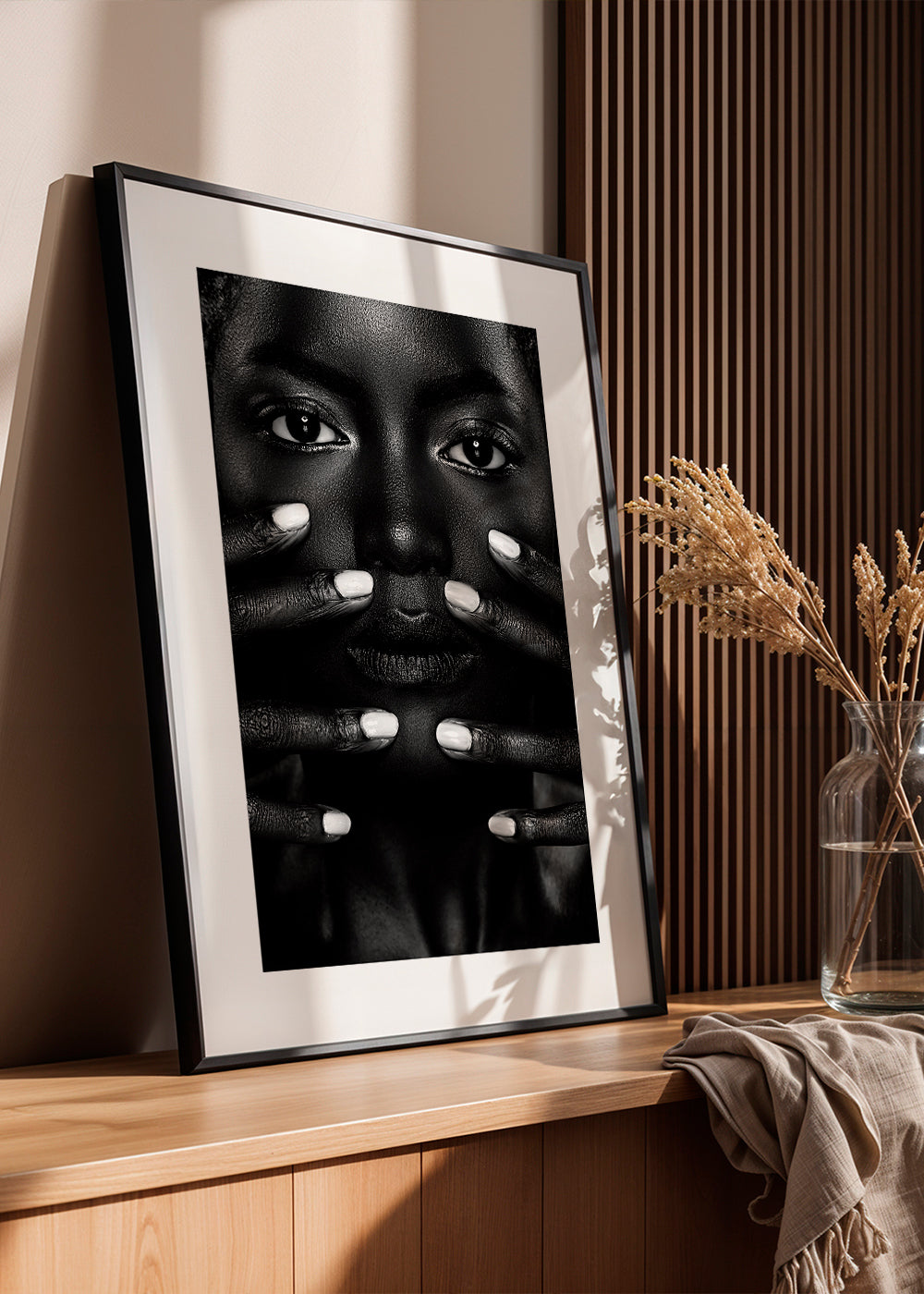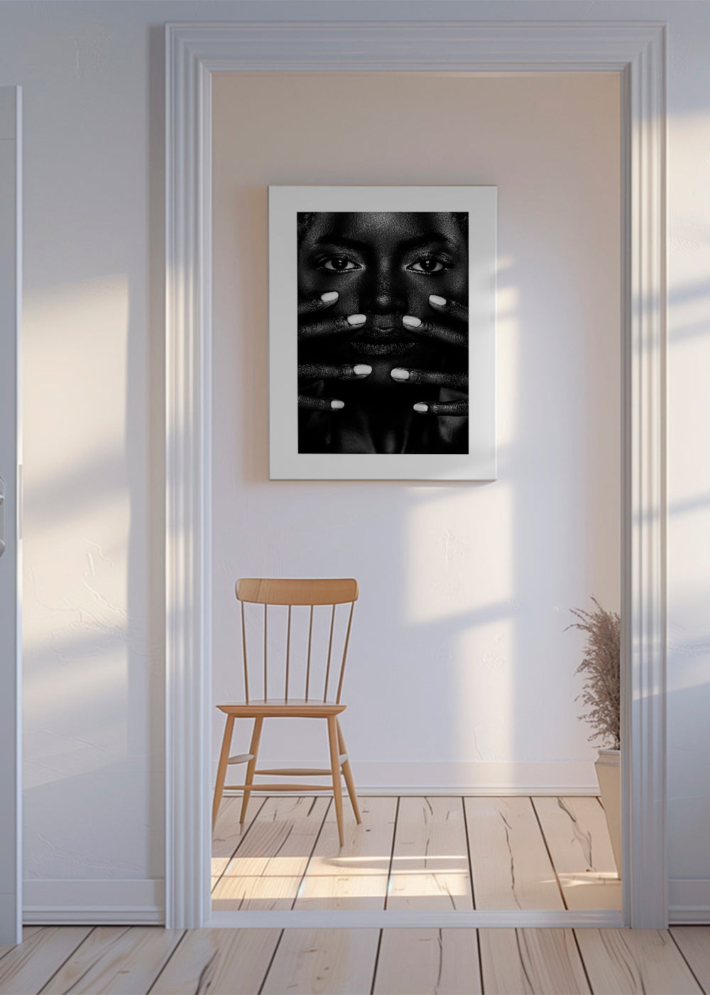 Schönes Poster Im Stil unserer wandbild mit frau, geschaffen von 1x, mit Schattierungen Schwarz-weiß, und im Format Vertikal. Diese Fotografie in Kombination mit anderen Fotobildern ist ideal für die Gestaltung eine Bilderwand. Verleihe deinen Zimmern mit Kunst einen neuen Look. Das Wandbild wird mit weißem Bilderrahmen geliefert, der das Kunstwerk richtig in Szene setzt.