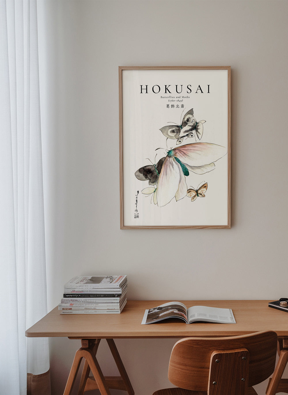 Poster in Schwarz-Weiß Butterflies and Moths by Katsushika Hokusai