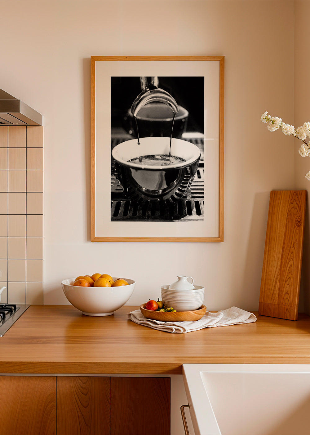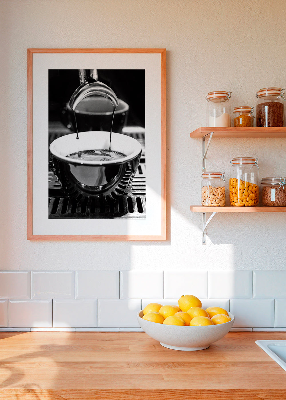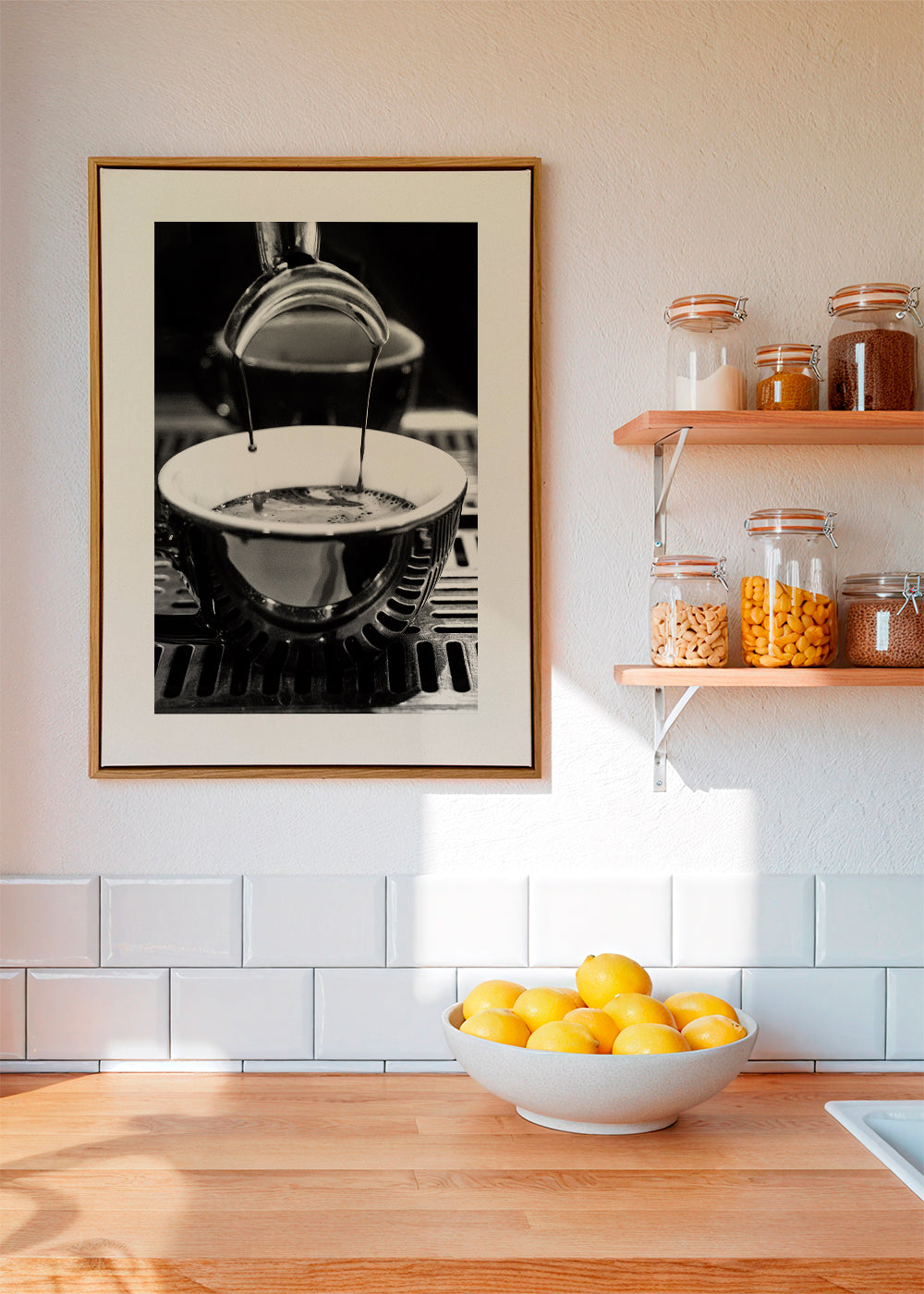 Schöner Kunstdruck inspiriert durch die Kollektion von kaffee-poster und bilder mit kaffee-motiven, aus der Kollektion des Künstlers 1x, in den Farbtönen schwarz-weiß, und Bildorientierung vertikal. Diese Fotografie ist ein schönes Designelement – die perfekte Ergänzung für jede Inneneinrichtung. Kombiniere das Wandbild mit anderen gerahmten Bildern, um eine künstlerische Fotowand zu erstellen. Mache aus deiner Wand ein Bild für die Götter. Weiß gerahmte Bilder kommen besonders gut zum Ausdruck.