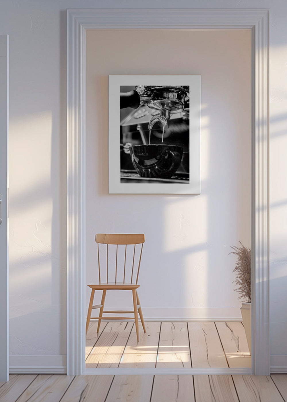 Schöner Kunstdruck aus unserer Themengruppe kaffee-poster und bilder mit kaffee-motiven, kreiert von 1x, mit Farbtönen schwarz-weiß, und im Format vertikal. Ein Bild sagt mehr als tausend Worte – mit unseren Fotobildern auf Leinwand oder Foto-Postern erzählen deine Wände Geschichten. Eleganz inspiriert durch Kunst. Weiß gerahmte Bilder kommen besonders gut zum Ausdruck.