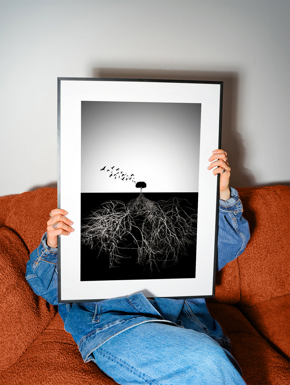 Wenn Sie einen unserer Drucke mit einem der von uns angebotenen Rahmen kombinieren, erhalten Sie die Drucke gerahmt und fertig zum Aufhängen. Falls Sie den Druck und den Rahmen separat kaufen oder Ihre eigenen Drucke hinzufügen möchten, öffnen Sie die hinteren Enden, entfernen Sie die Abdeckung und legen Sie Ihr Blatt bei. Ganz einfach!