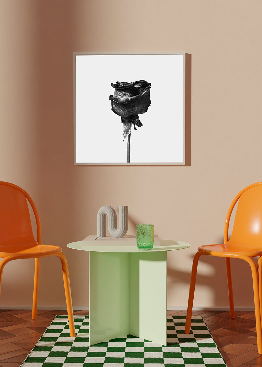 Poster in Schwarz-Weiß Dried rose black and white photograph - Square