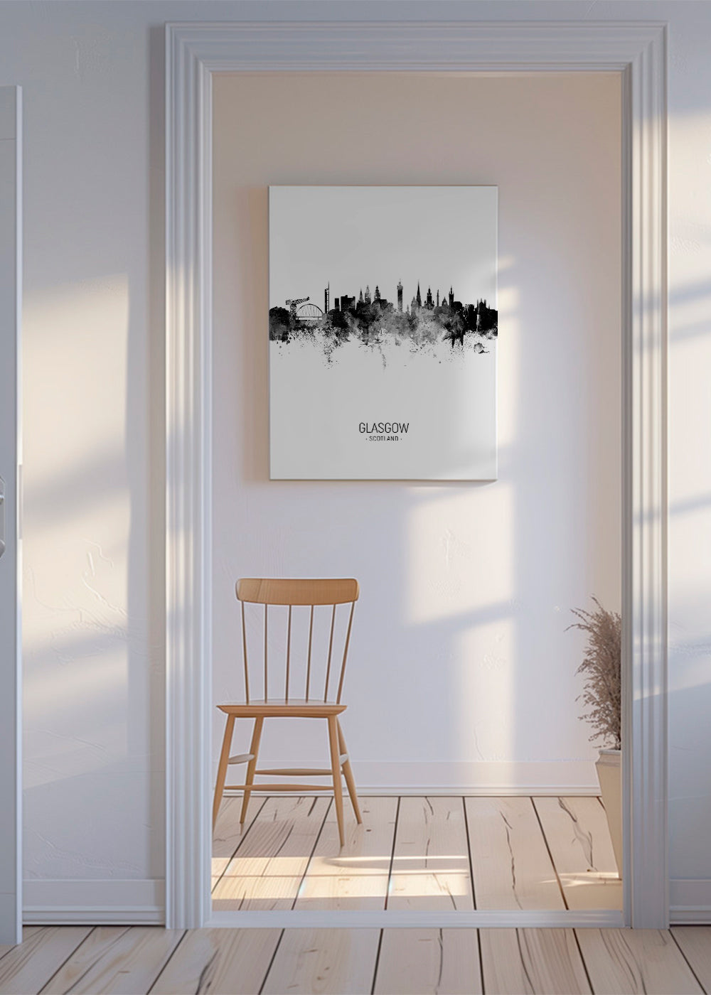 Poster in Schwarz-Weiß Glasgow Skyline black and white