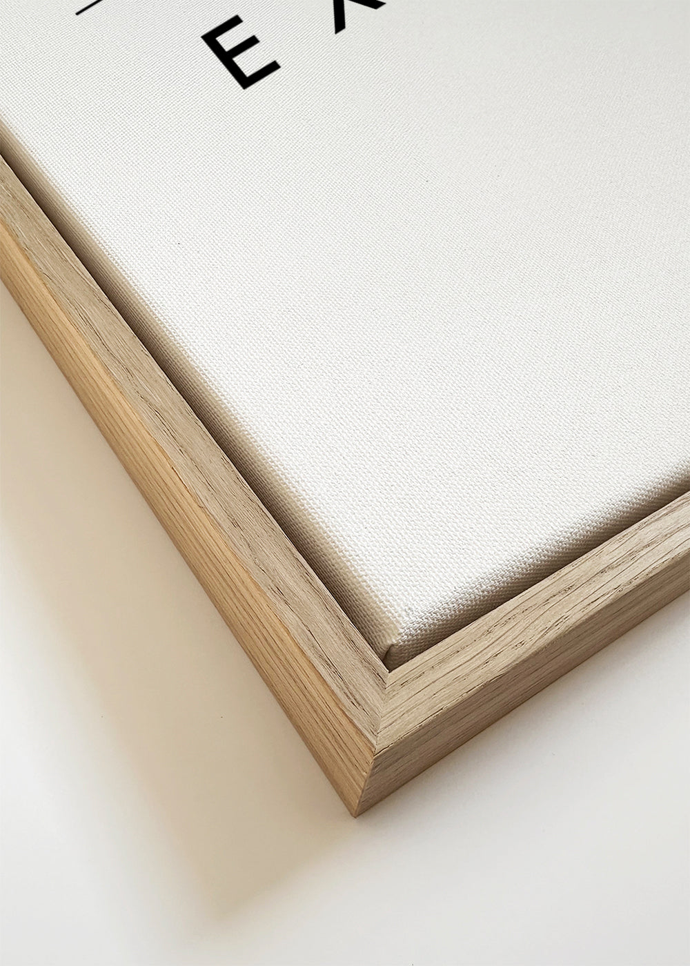 Alle unsere Rahmen werden in Spanien hergestellt. Die weißen, schwarzen und Eichenrahmen sind aus Ayous-Holz gefertigt, und die Eichenrahmen sind mit Eiche furniert, während die metallischen Rahmen aus Aluminium sind.