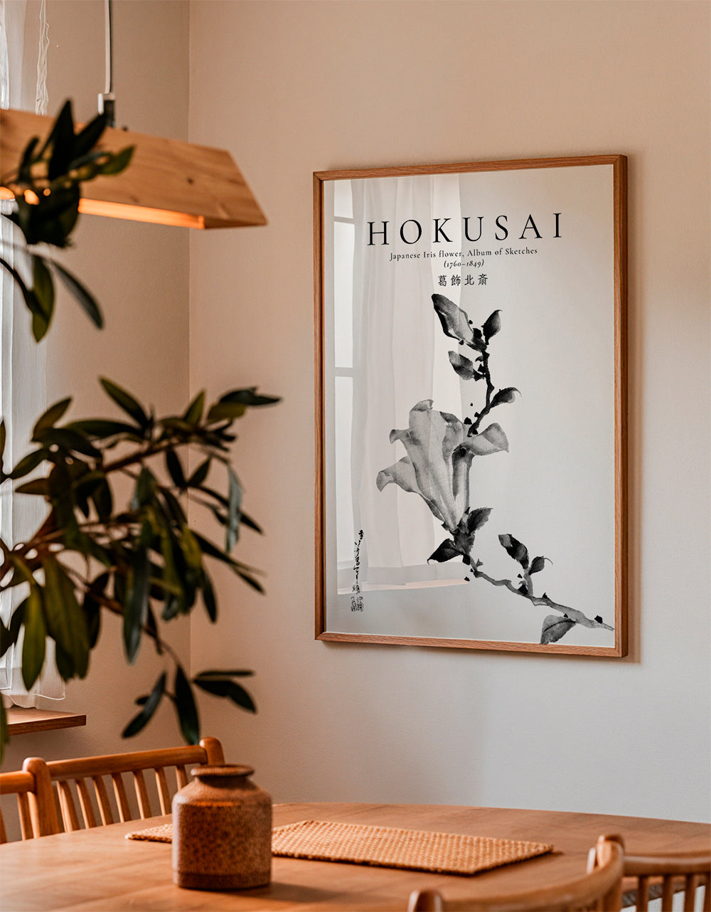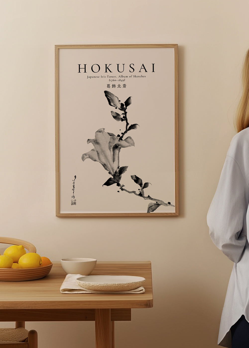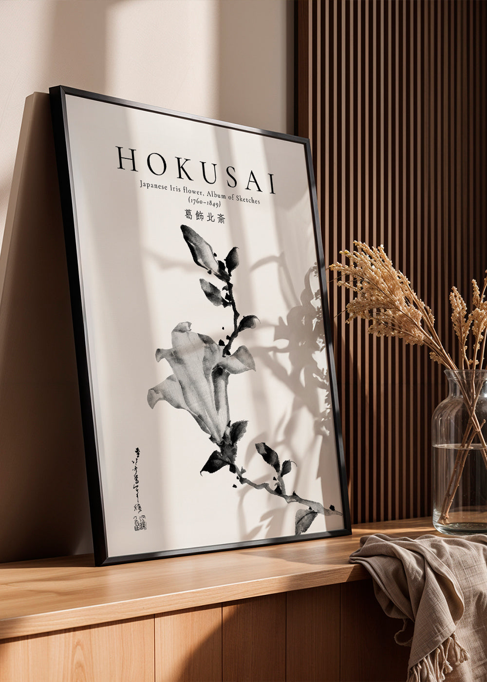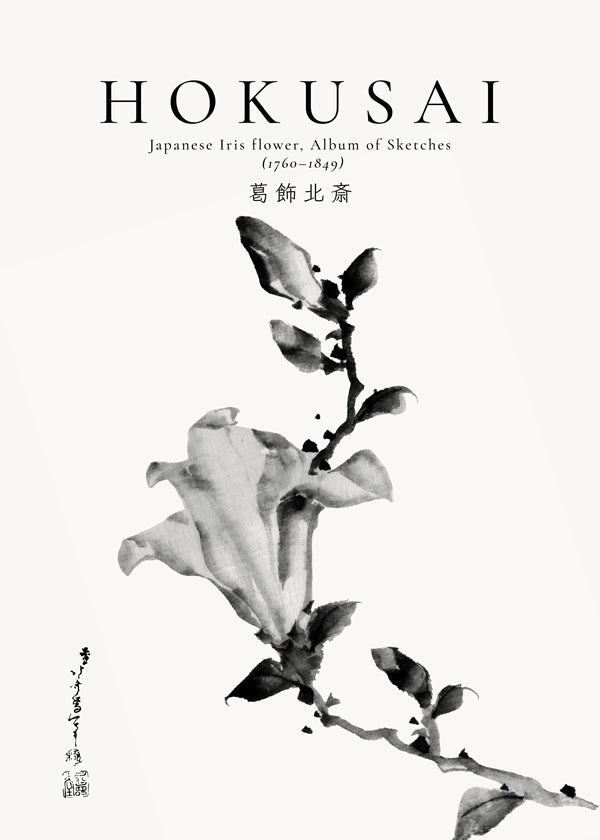 Poster in Schwarz-Weiß Japanese Iris flower by Katsushika Hokusai