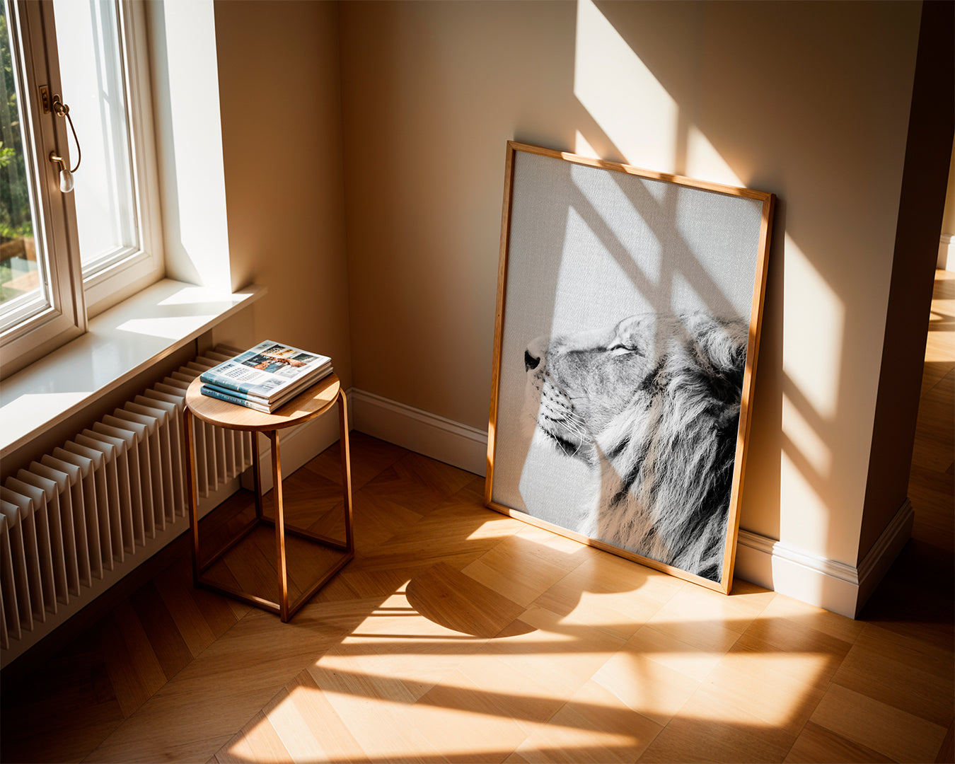 Alle unsere Rahmen werden in Spanien hergestellt. Die weißen, schwarzen und Eichenrahmen sind aus Ayous-Holz gefertigt, und die Eichenrahmen sind mit Eiche furniert, während die metallischen Rahmen aus Aluminium sind.