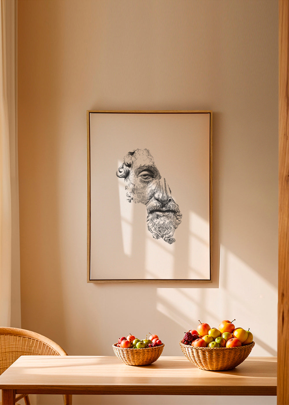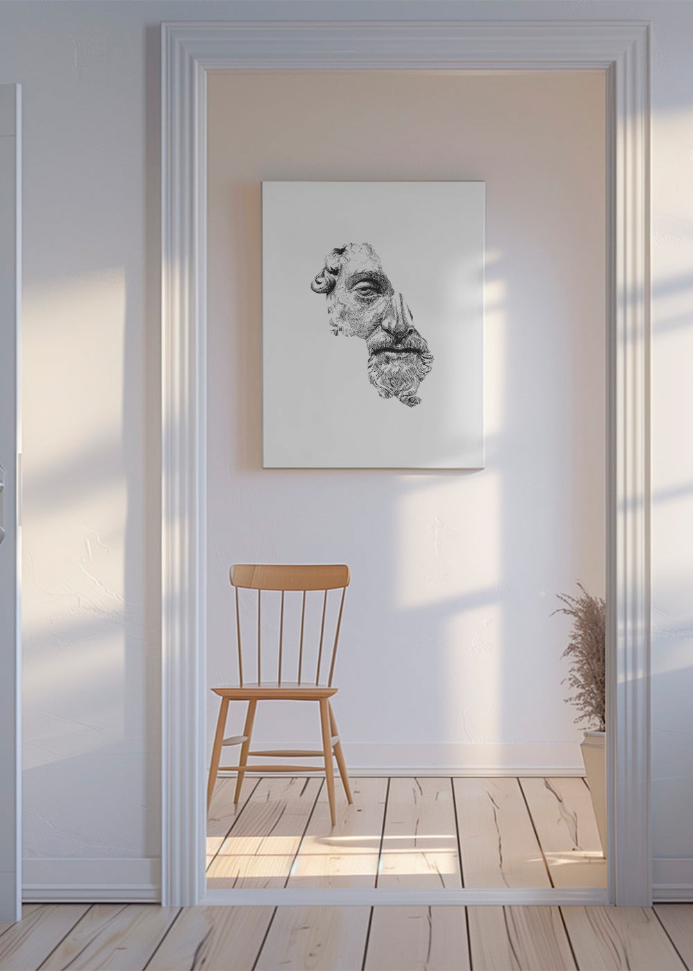 Ein Poster Im Stil unserer bilder mit gesichtern, kreiert von Daniel Coulmann, mit Nuancen Schwarz-weiß, und Bildorientierung Vertikal. Illustration zählt zu der deutlichsten Ausdrucksform der bildenden Kunst. Dieses Wandbild lässt niemanden gleichgültig. Gestalte das perfekte Ambiente.