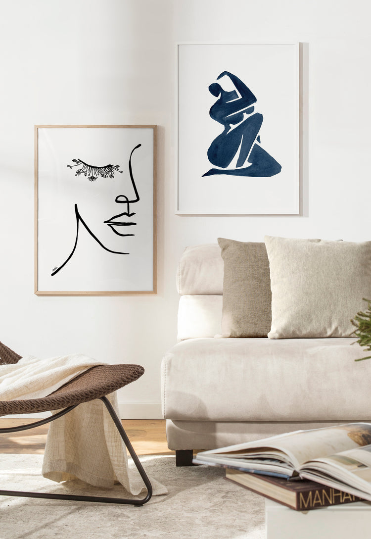 Ein Poster aus der Kollektion von bilder mit gesichtern, des Kreativschöpfers Ninhol, mit Schattierungen Schwarz-weiß, und ideal für die Bildposition Vertikal. Wandbilder mit Illustrationen lassen sich gut mit Kunst im minimalistischen und abstrakten Stil kombinieren. Bringe frischen Wind in deine vier Wände.