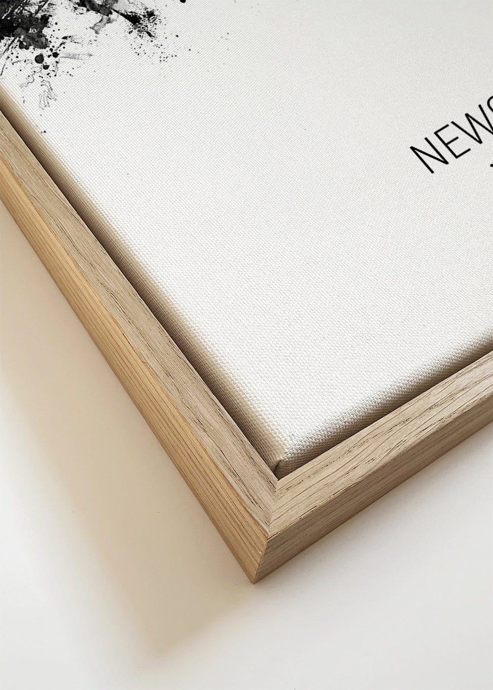 Alle unsere Rahmen werden in Spanien hergestellt. Die weißen, schwarzen und Eichenrahmen sind aus Ayous-Holz gefertigt, und die Eichenrahmen sind mit Eiche furniert, während die metallischen Rahmen aus Aluminium sind.