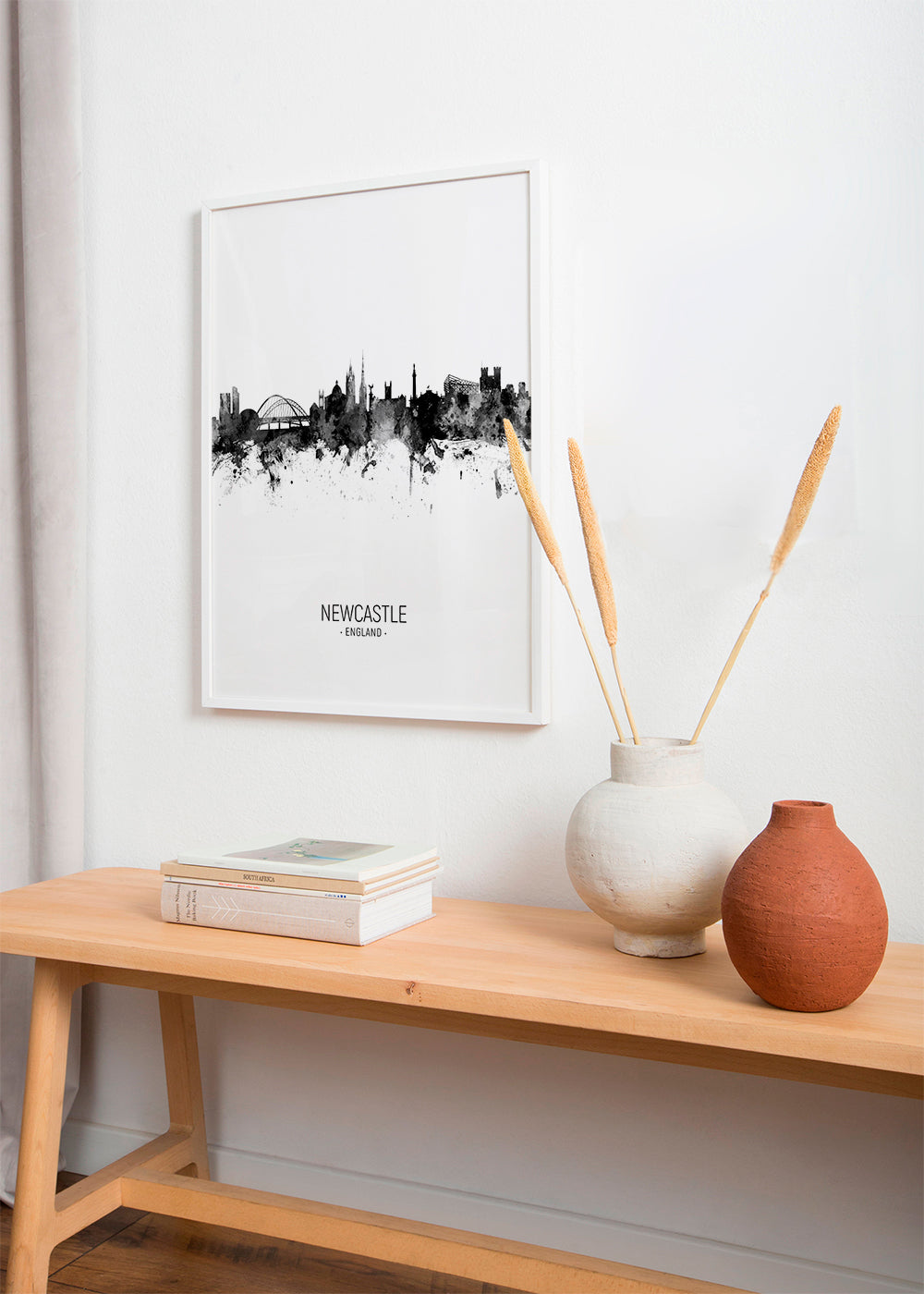 Poster in Schwarz-Weiß Newcastle Skyline black and white