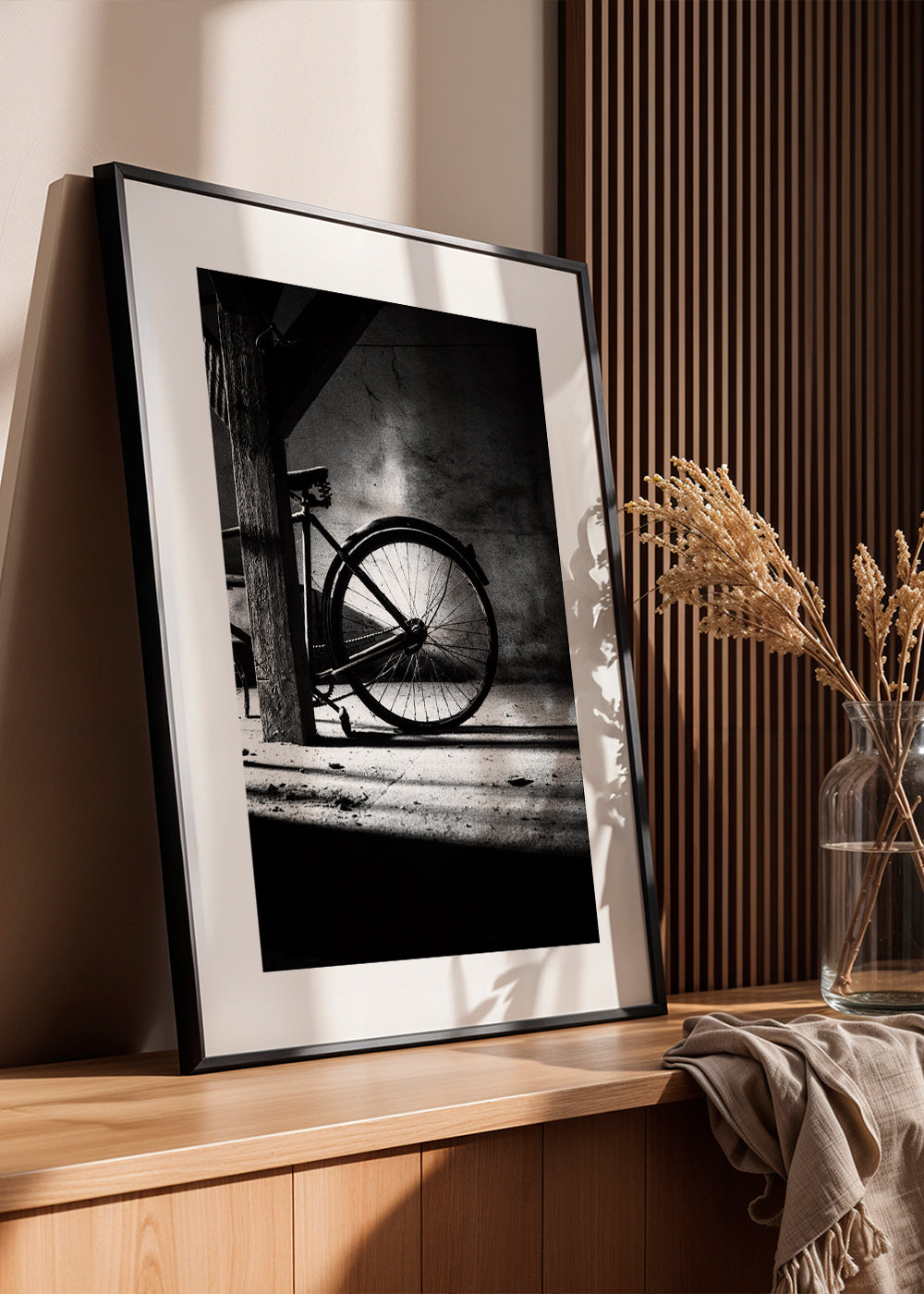Dieses Kunstwerk inspiriert durch die Kollektion von fahrrad-poster, kreiert von 1x, mit Farben schwarz-weiß, und im Format vertikal. Diese Fotografie ist ein schönes Designelement – die perfekte Ergänzung für jede Inneneinrichtung. Kombiniere das Wandbild mit anderen gerahmten Bildern, um eine künstlerische Fotowand zu erstellen. Kreative Wandgestaltung. Das Wandbild wird mit weißem Bilderrahmen geliefert, der das Kunstwerk richtig in Szene setzt.