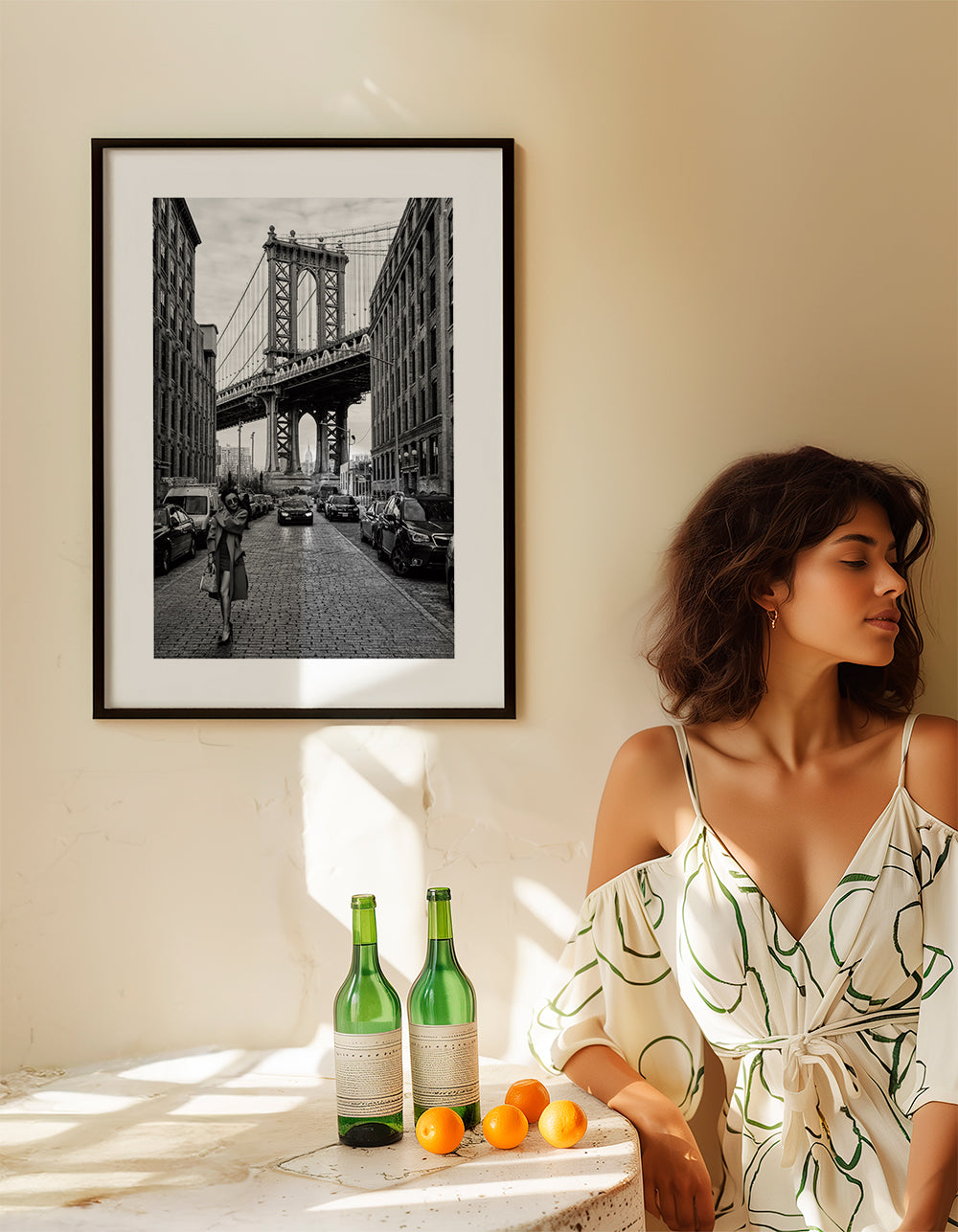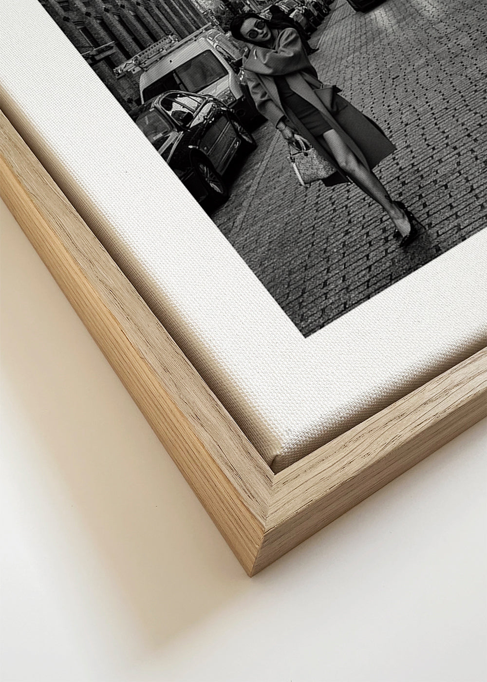 Wenn Sie die Passepartout-Option wählen, fügen wir die weiße matte Platte dem Rahmen hinzu und reduzieren das Design der Arbeit. Wählen Sie beispielsweise ein Druckformat 50x70 cm, mit eichenfarbenem Rahmen und Passepartout, reduzieren wir das Design des Druckes auf das bisherige Format (40x50cm). So passt es sich perfekt an das Innenfenster des Passepartouts an.