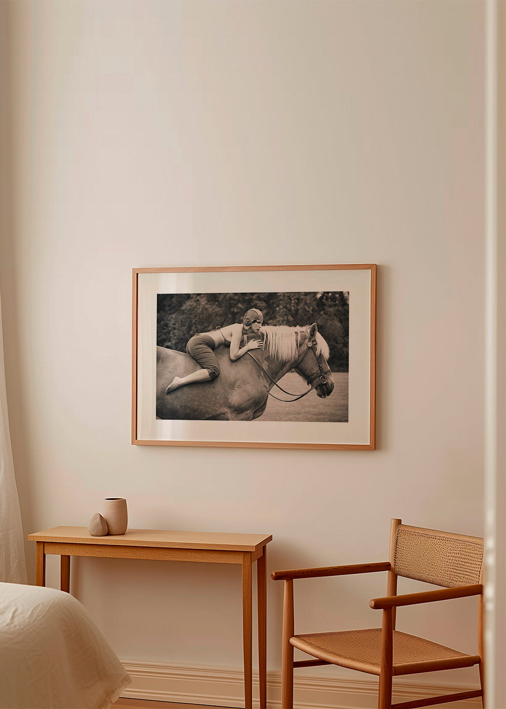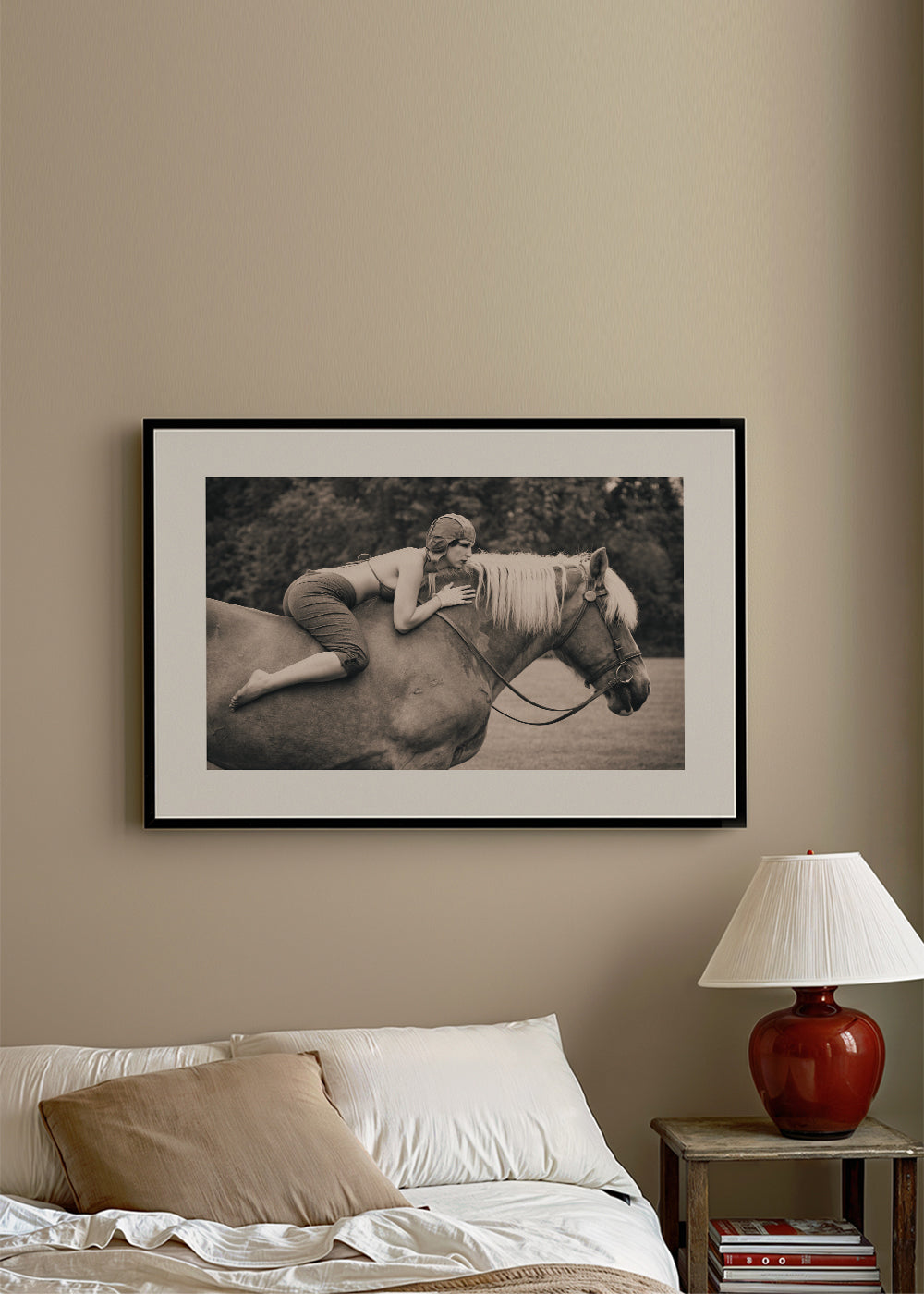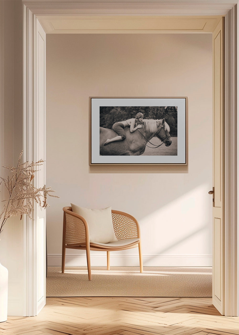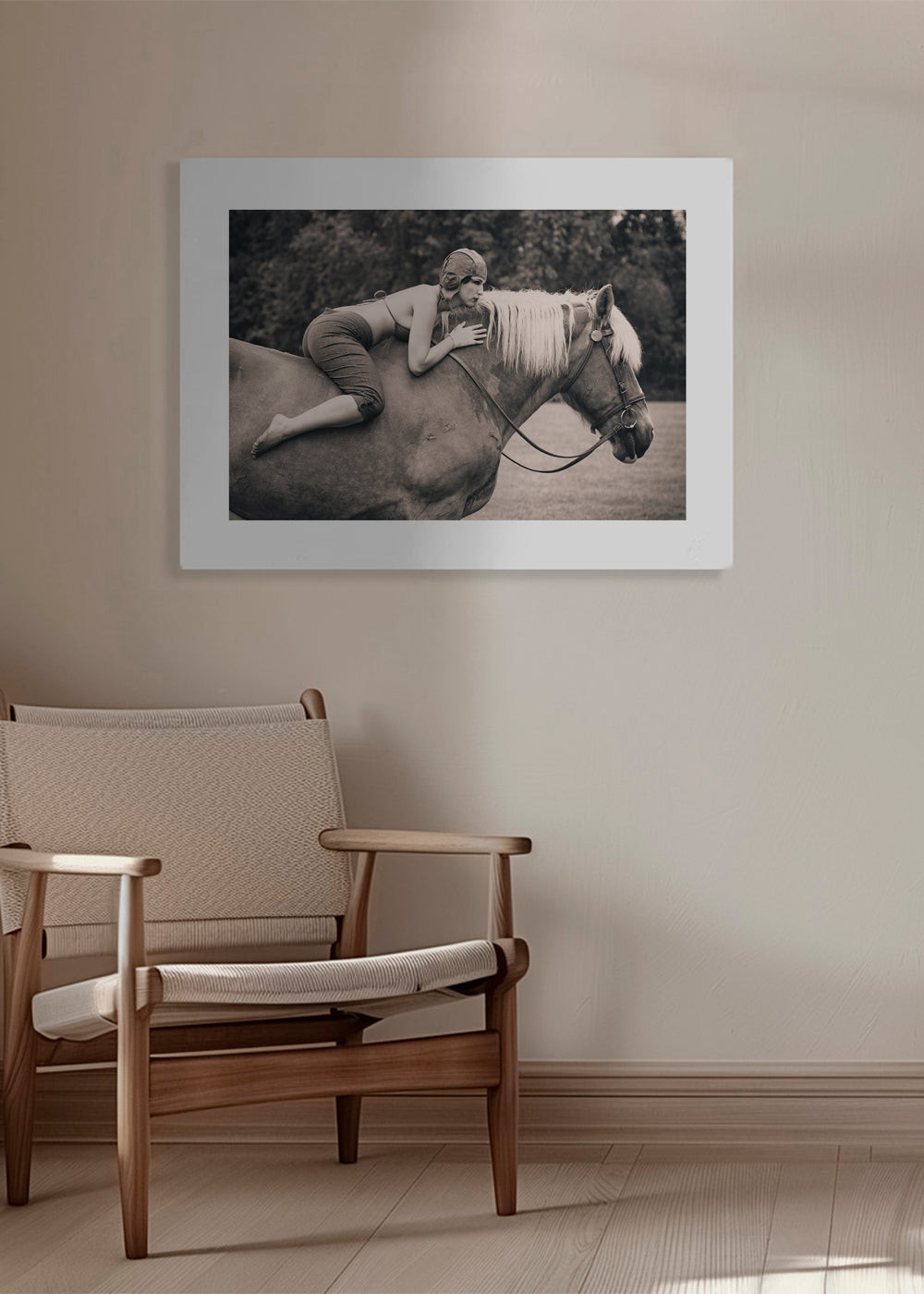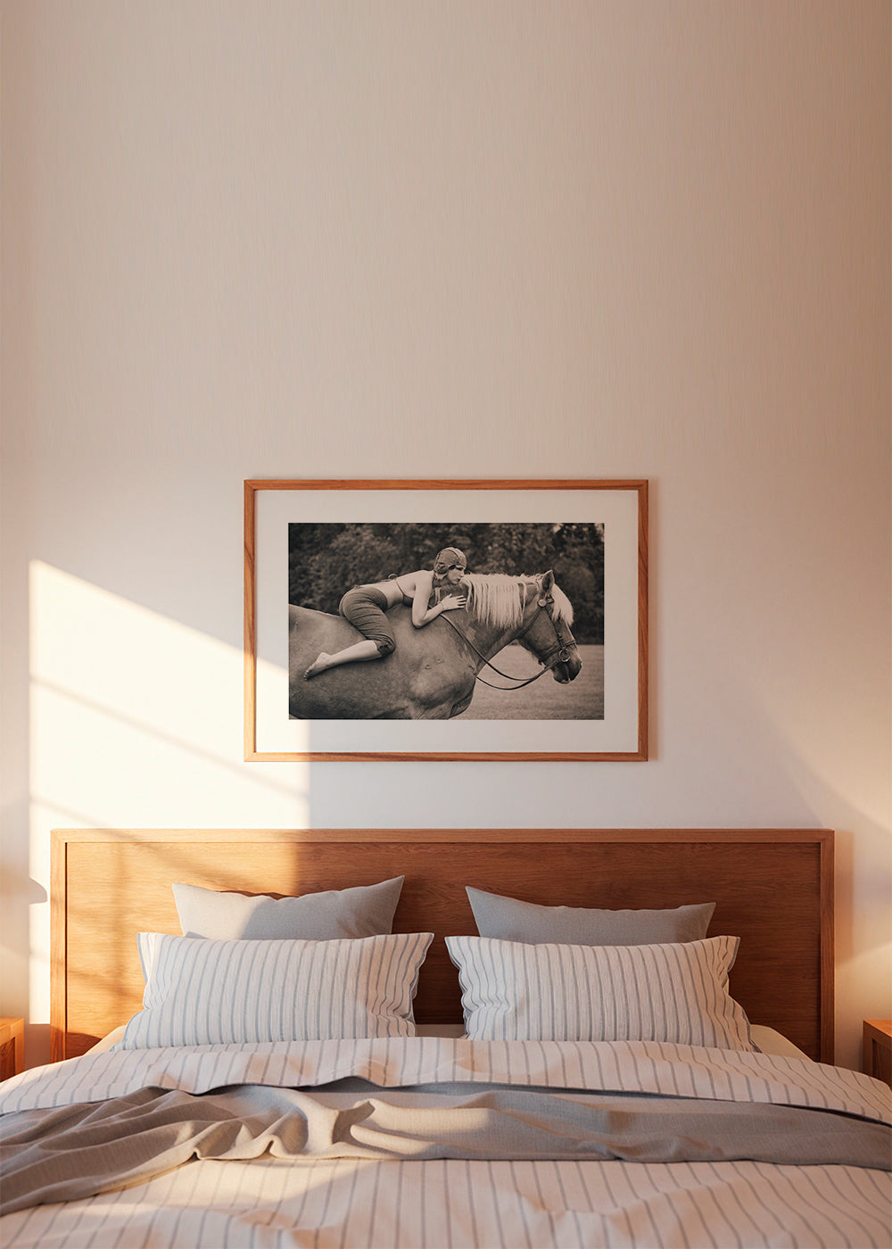 Dieses Poster inspiriert durch die Kollektion von poster und bilder mit pferde-motiven, kreiert von 1x, Farbtönen schwarz-weiß, und mit Bildposition Horizontal. Verleihe deiner Inneneinrichtung mit diesem Wandbild im Retro-Style, in Kombination mit anderen, einen schönen Vintage-Touch. Unverfälschte Kunst und authentisches Design. Weiß gerahmte Bilder kommen besonders gut zum Ausdruck.