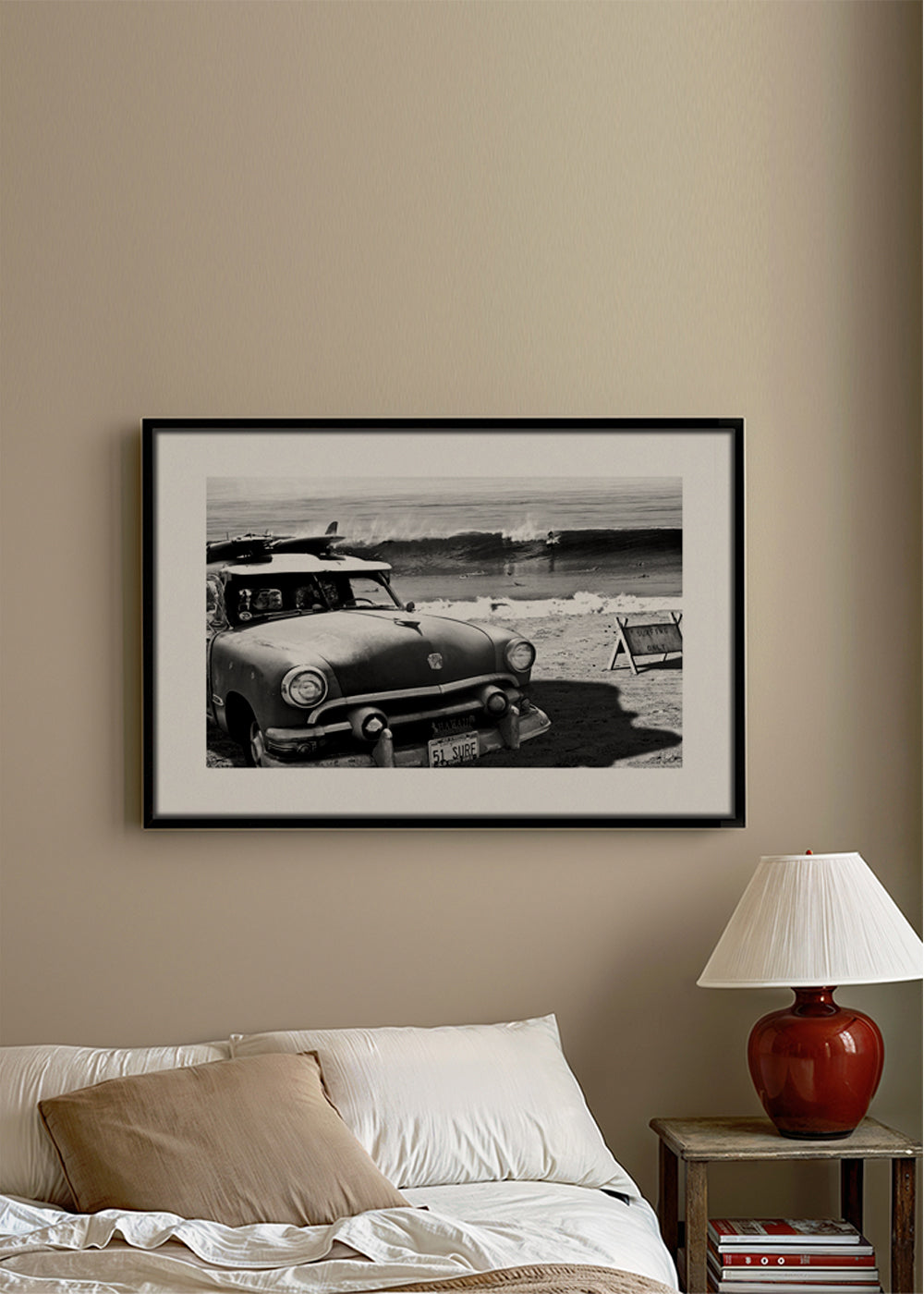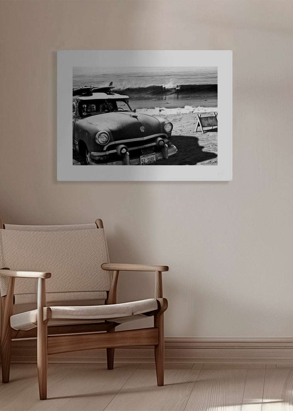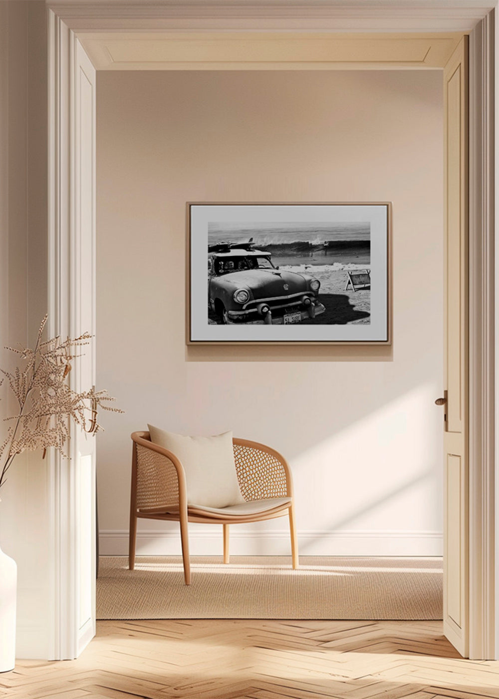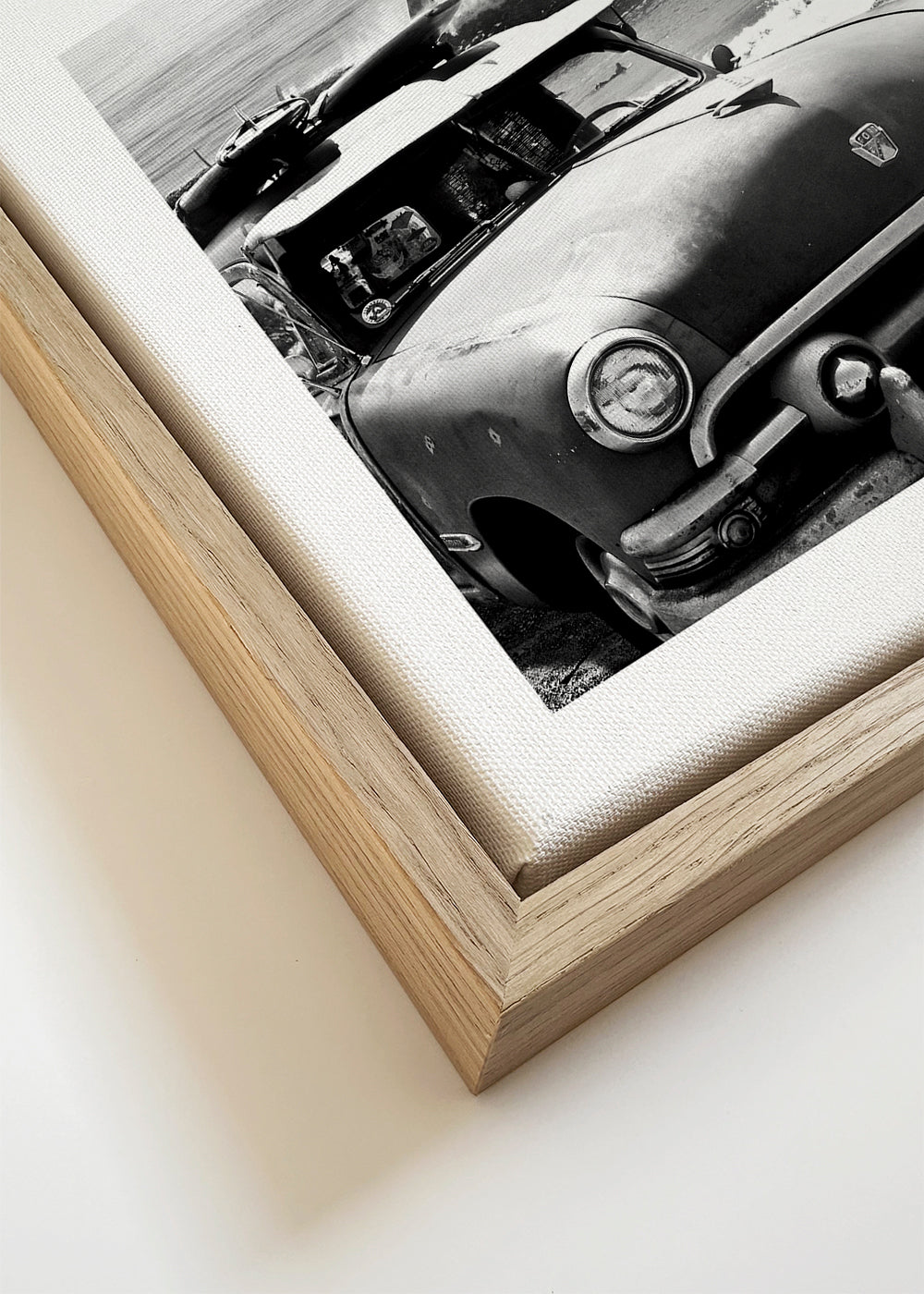 Dieser Kunstdruck aus unserer Kollektion von auto-poster und bilder mit auto-motiven, Künstlern 1x, mit Farbverlauf Schwarz-weiß, und für die Bildpositionen Horizontal. Wenn du nach Bildern im Retro-Stil suchst, dann ist dieses Design perfekt für dich. Kombiniere es für einen originellen Einrichtungsstil mit anderen +Vintage-Postern+. Eleganz inspiriert durch Kunst. Wandbild mit weißem Rand, um das Bild hervorzuheben.