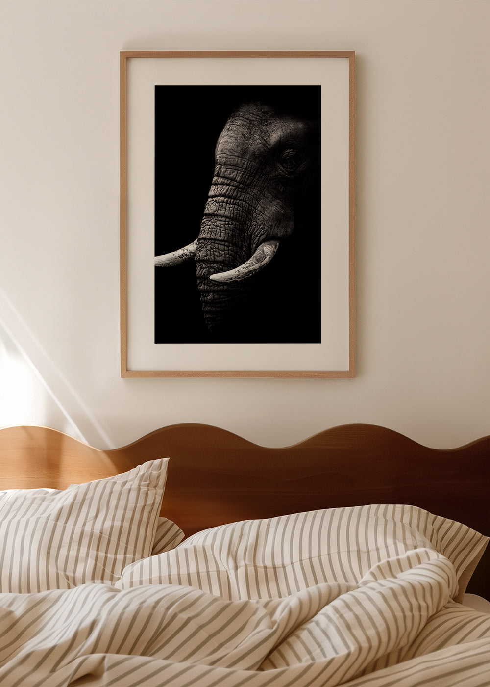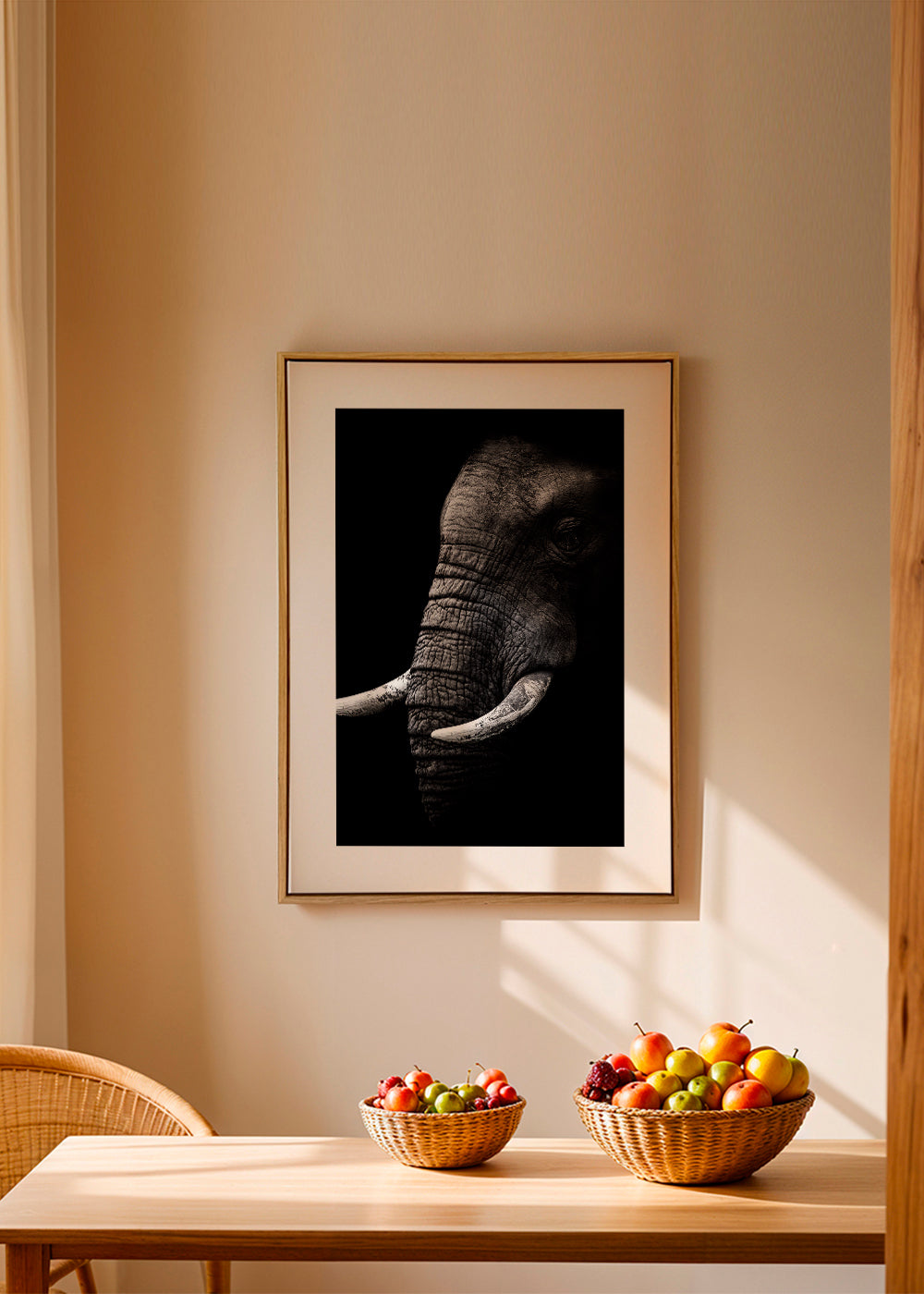 Ein Poster aus der Kollektion von elefanten-bilder und poster, kreiert von 1x, mit Schattierungen Schwarz-weiß, und mit Ausrichtung Vertikal. Wandbilder mit Tiermotiven sind ideal, um unsere Verbundenheit mit der Natur an unseren Wänden auszudrücken. Gestalte einen einzigartigen Bereich. Weiß gerahmte Bilder kommen besonders gut zum Ausdruck.