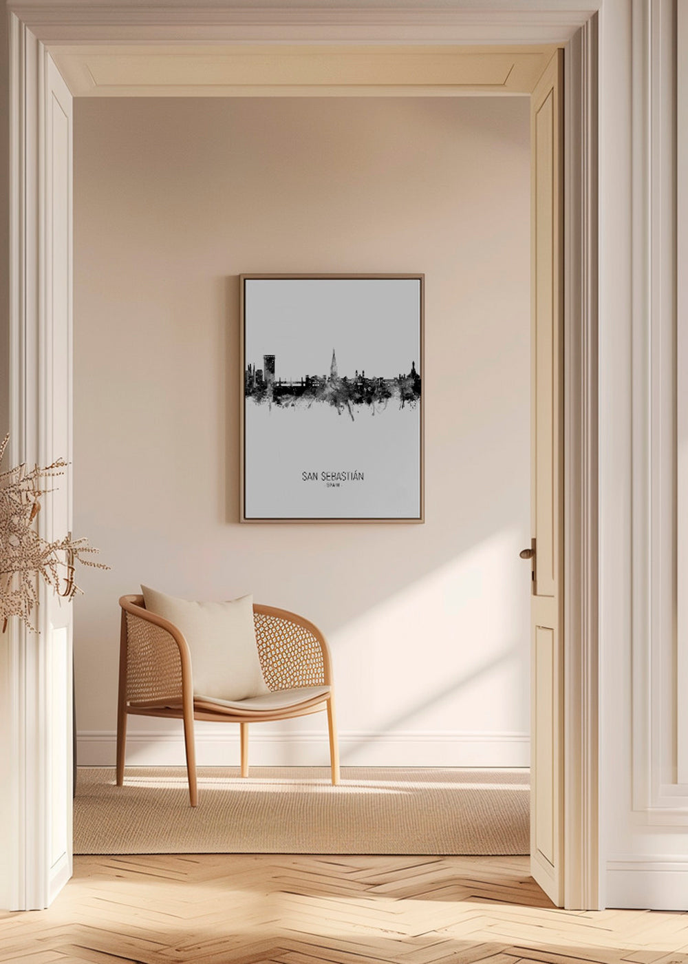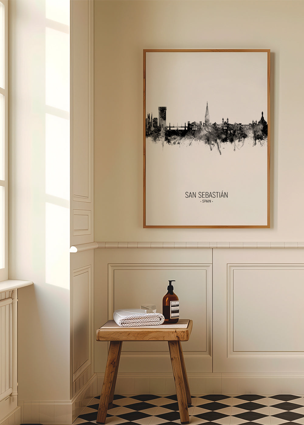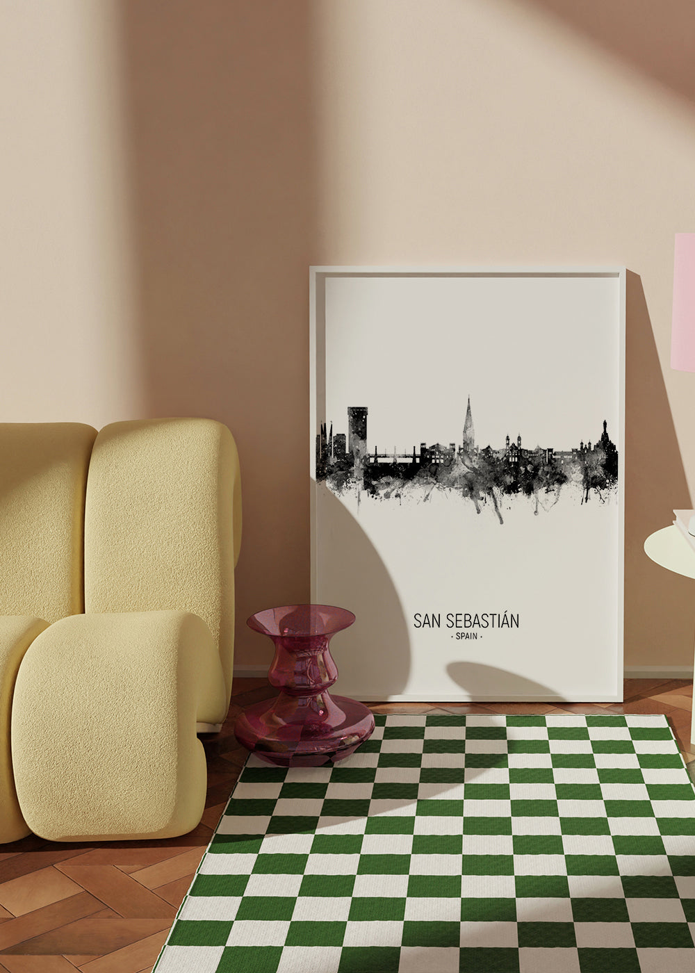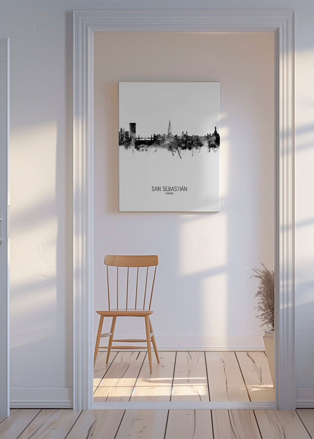 Poster in Schwarz-Weiß San Sebastián Skyline black and white