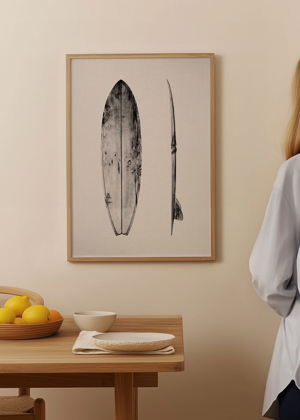 Ein Wandbild aus der Kollektion von surf-poster und wandbilder , von Gal Design, mit Farben Schwarz-weiß, und mit Ausrichtung Vertikal. Diese Fotografie in Kombination mit anderen Fotobildern ist ideal für die Gestaltung eine Bilderwand. Verschönere deine Wände mit Wandbilder-Deko.
