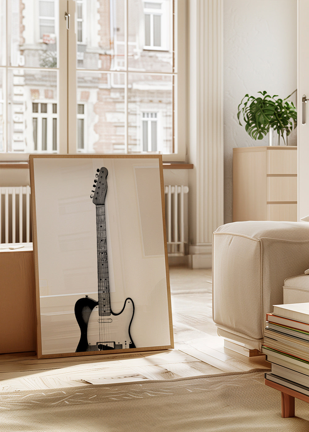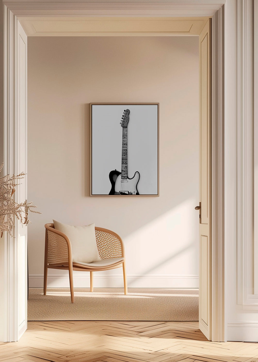 Wenn Sie die Passepartout-Option wählen, fügen wir die weiße matte Platte dem Rahmen hinzu und reduzieren das Design der Arbeit. Wählen Sie beispielsweise ein Druckformat 50x70 cm, mit eichenfarbenem Rahmen und Passepartout, reduzieren wir das Design des Druckes auf das bisherige Format (40x50cm). So passt es sich perfekt an das Innenfenster des Passepartouts an.