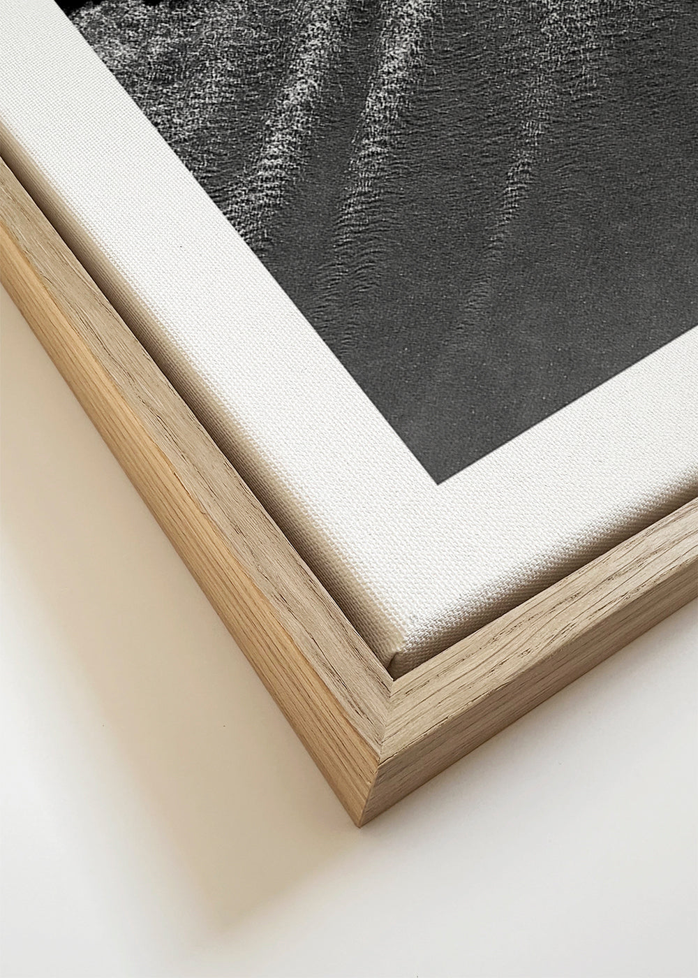 Wenn Sie die Passepartout-Option wählen, fügen wir die weiße matte Platte dem Rahmen hinzu und reduzieren das Design der Arbeit. Wählen Sie beispielsweise ein Druckformat 50x70 cm, mit eichenfarbenem Rahmen und Passepartout, reduzieren wir das Design des Druckes auf das bisherige Format (40x50cm). So passt es sich perfekt an das Innenfenster des Passepartouts an.