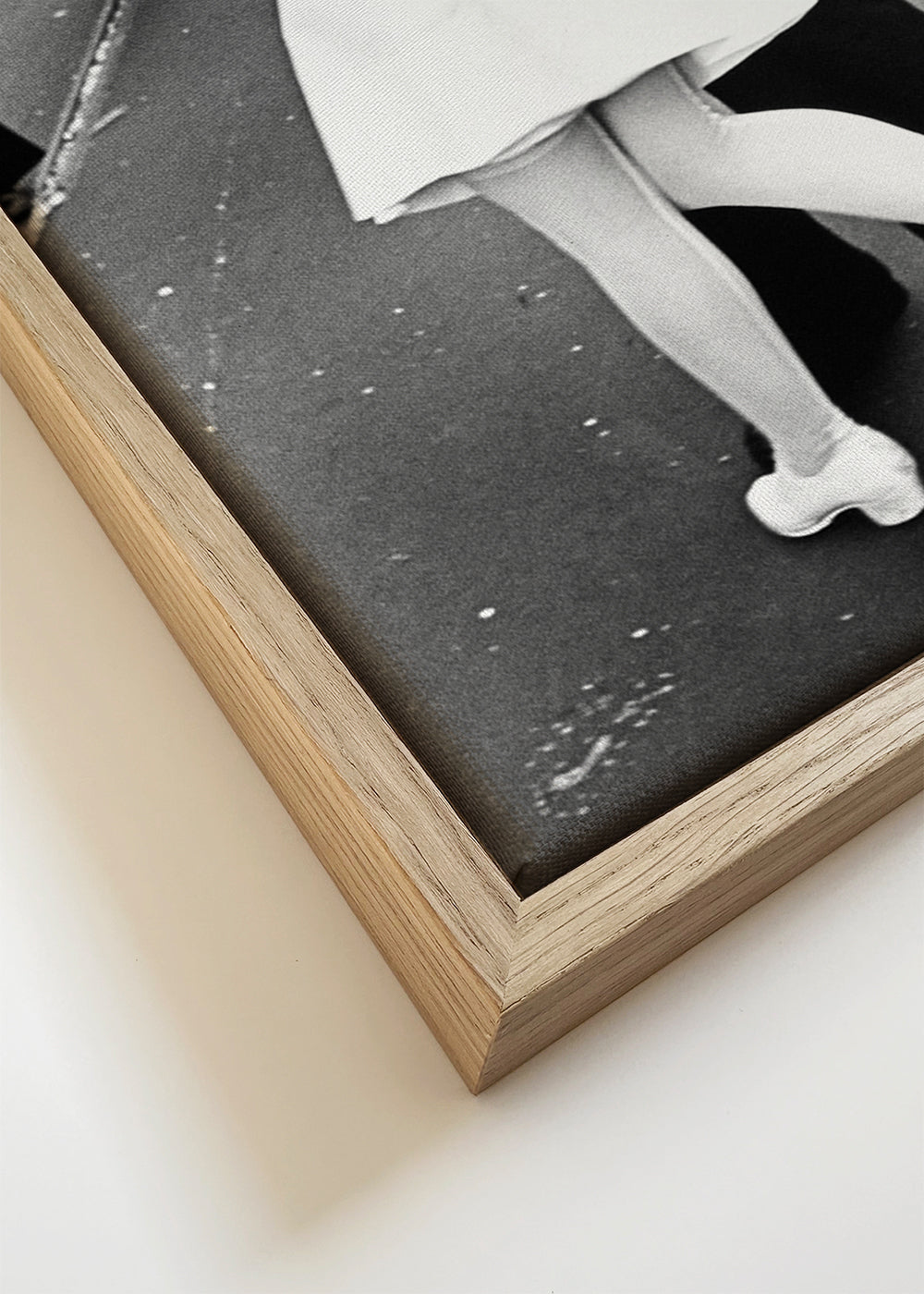 Wenn Sie die Passepartout-Option wählen, fügen wir die weiße matte Platte dem Rahmen hinzu und reduzieren das Design der Arbeit. Wählen Sie beispielsweise ein Druckformat 50x70 cm, mit eichenfarbenem Rahmen und Passepartout, reduzieren wir das Design des Druckes auf das bisherige Format (40x50cm). So passt es sich perfekt an das Innenfenster des Passepartouts an.