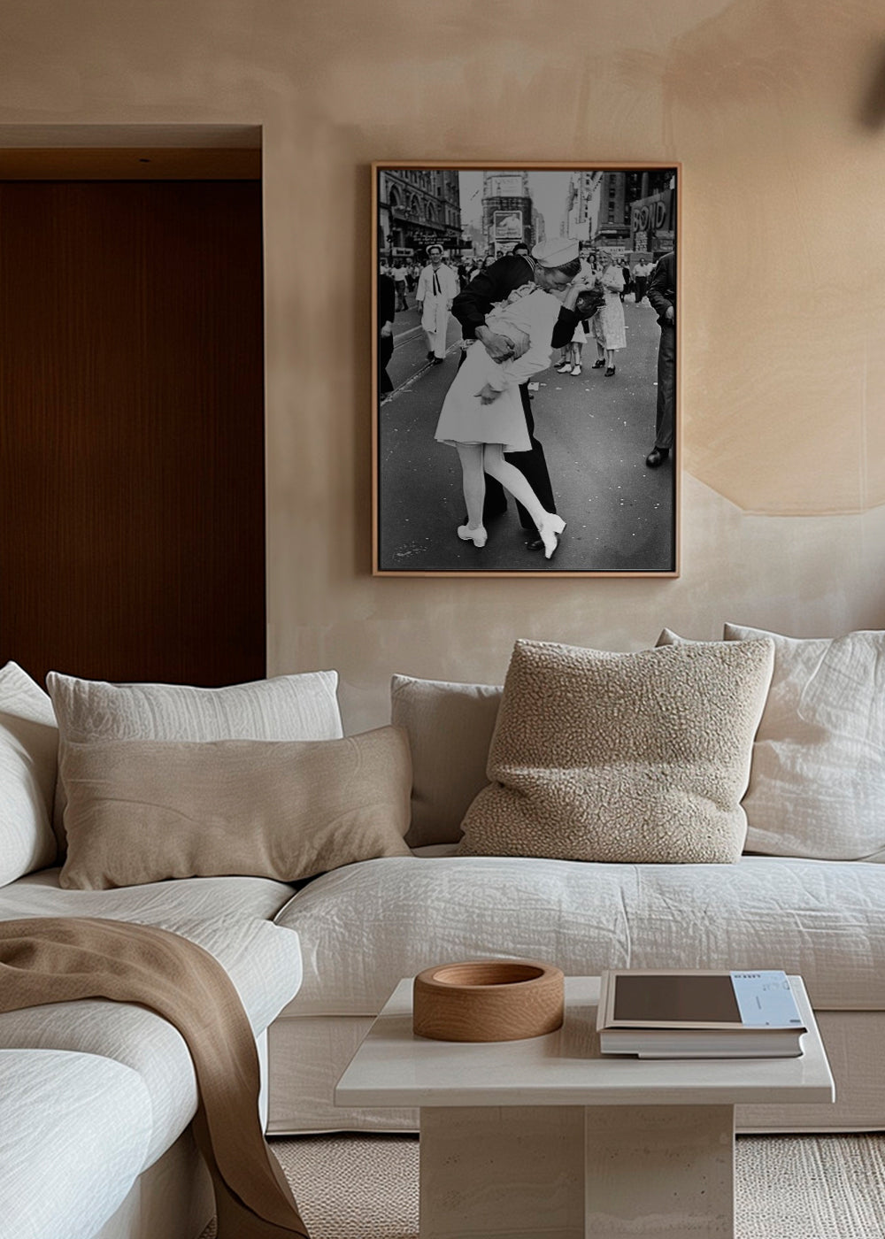 Poster in Schwarz-Weiß V-J Day Kiss Poster - vintage photograph