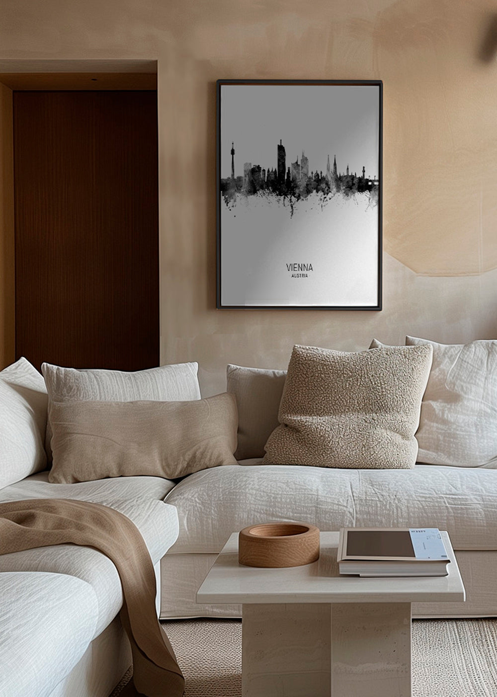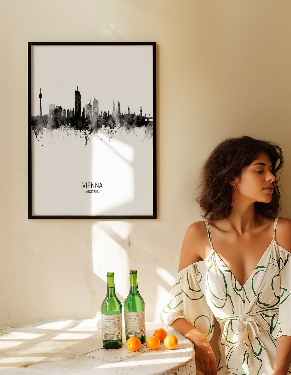 Poster in Schwarz-Weiß Vienna Skyline black and white