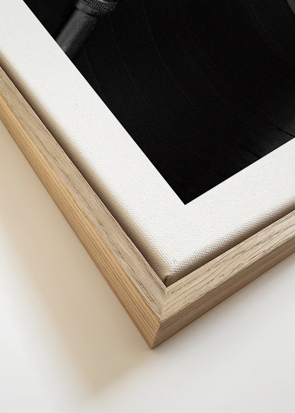 Wenn Sie die Passepartout-Option wählen, fügen wir die weiße matte Platte dem Rahmen hinzu und reduzieren das Design der Arbeit. Wählen Sie beispielsweise ein Druckformat 50x70 cm, mit eichenfarbenem Rahmen und Passepartout, reduzieren wir das Design des Druckes auf das bisherige Format (40x50cm). So passt es sich perfekt an das Innenfenster des Passepartouts an.