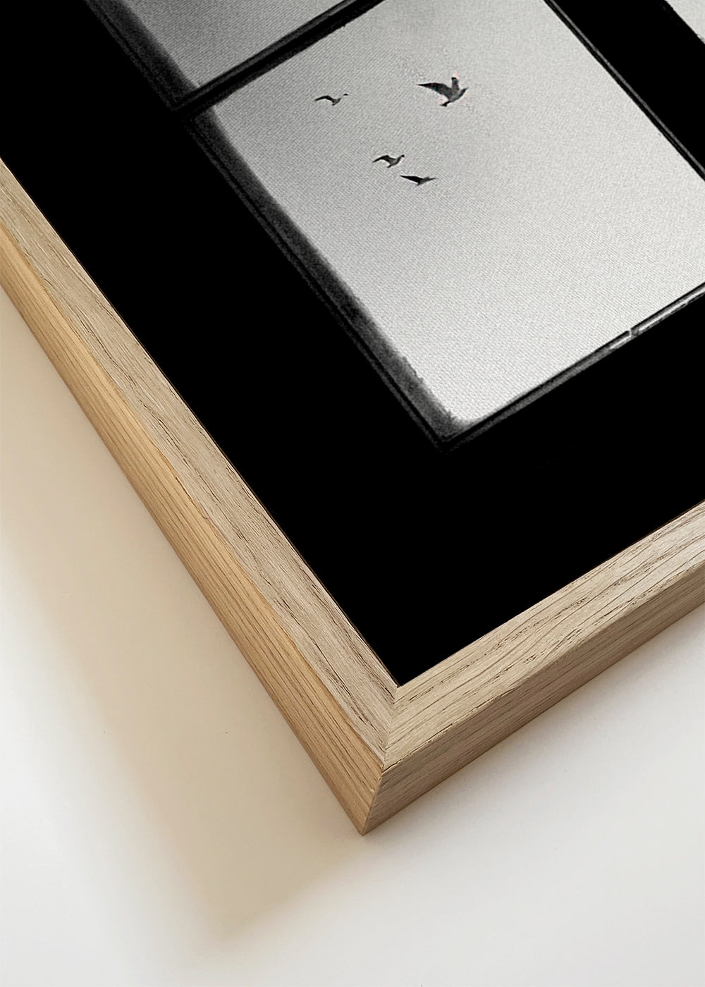 Wenn Sie die Passepartout-Option wählen, fügen wir die weiße matte Platte dem Rahmen hinzu und reduzieren das Design der Arbeit. Wählen Sie beispielsweise ein Druckformat 50x70 cm, mit eichenfarbenem Rahmen und Passepartout, reduzieren wir das Design des Druckes auf das bisherige Format (40x50cm). So passt es sich perfekt an das Innenfenster des Passepartouts an.