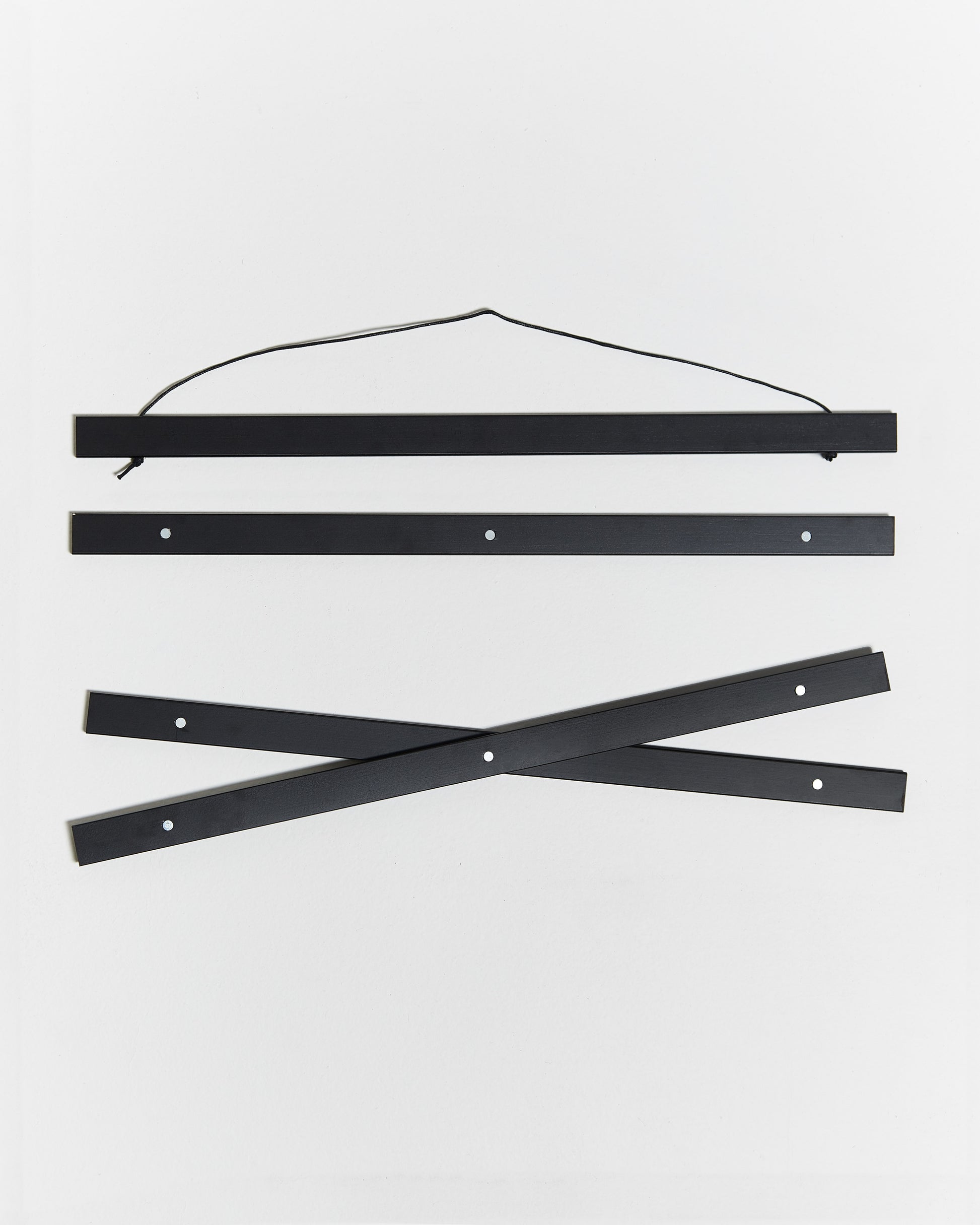 Plakataufhänger aus schwarzem Massivholz. Dank seiner Magnete können Sie Ihre 50x50cm, 50x70cm oder 50x40cm großen Werke im Querformat aufhängen, ohne dass sie beschädigt werden. Es enthält ein passendes schwarzes Seil, mit dem Sie den Kleiderbügel des von Ihnen bevorzugten Kleiderbügels platzieren können. Es ist eine originelle und schöne Art, Ihre Lieblingswerke an die Wand zu hängen, und wir haben Aufhänger in allen Größen auf unserer Website verfügbar.