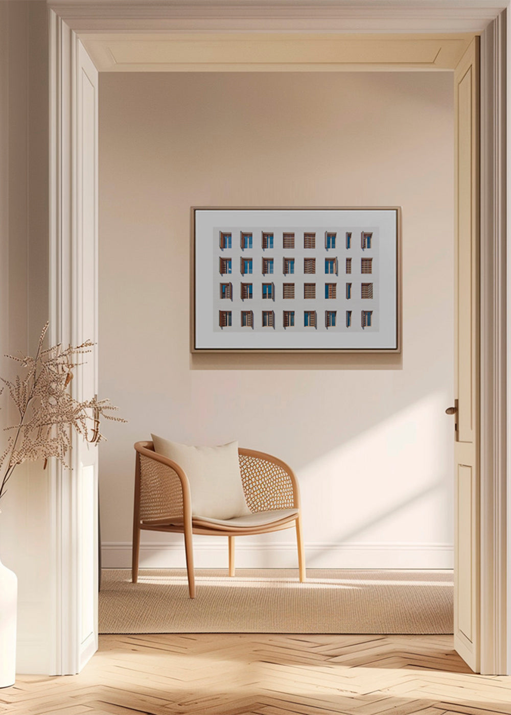 Ein Kunstdruck inspiriert durch die Kollektion von architektur-bilder und architektur-poster, des Kreativschöpfers 1x, mit Farbnuance Braun, und mit Ausrichtung Horizontal. Abstrakte und geometrische Formen erzeugen ein verspieltes, kreatives Ambiente. Lasse deiner Kreativität freien Lauf und dekoriere deine Wände mit Kunst. Weiß gerahmte Bilder kommen besonders gut zum Ausdruck.