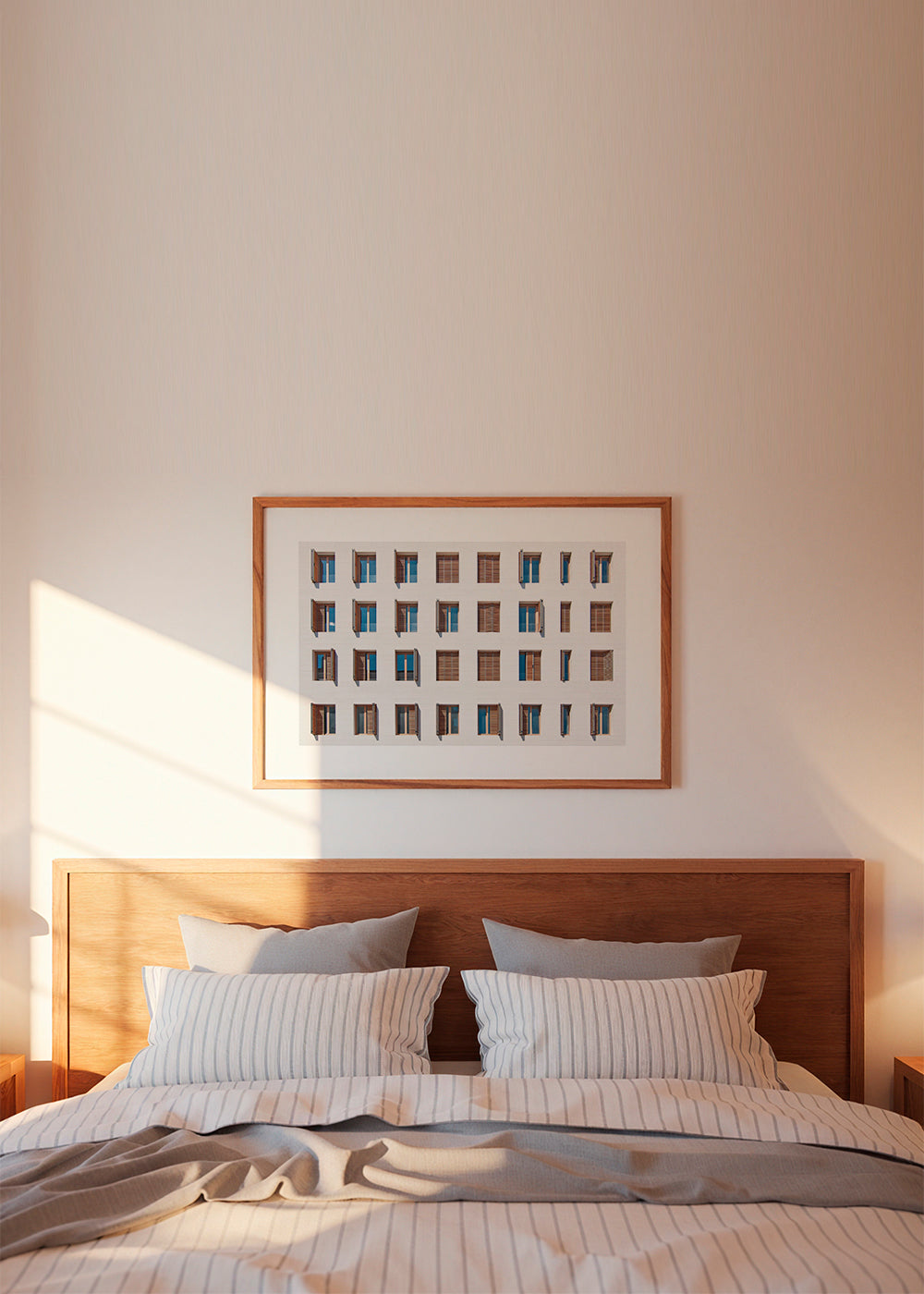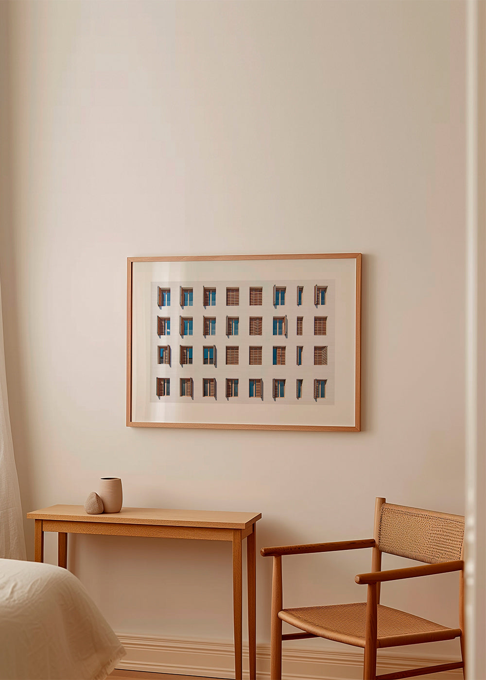 Alle unsere Rahmen werden in Spanien hergestellt. Die weißen, schwarzen und Eichenrahmen sind aus Ayous-Holz gefertigt, und die Eichenrahmen sind mit Eiche furniert, während die metallischen Rahmen aus Aluminium sind.