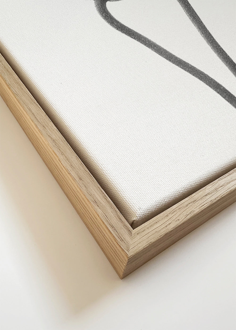 Alle unsere Rahmen werden in Spanien hergestellt. Die weißen, schwarzen und Eichenrahmen sind aus Ayous-Holz gefertigt, und die Eichenrahmen sind mit Eiche furniert, während die metallischen Rahmen aus Aluminium sind.