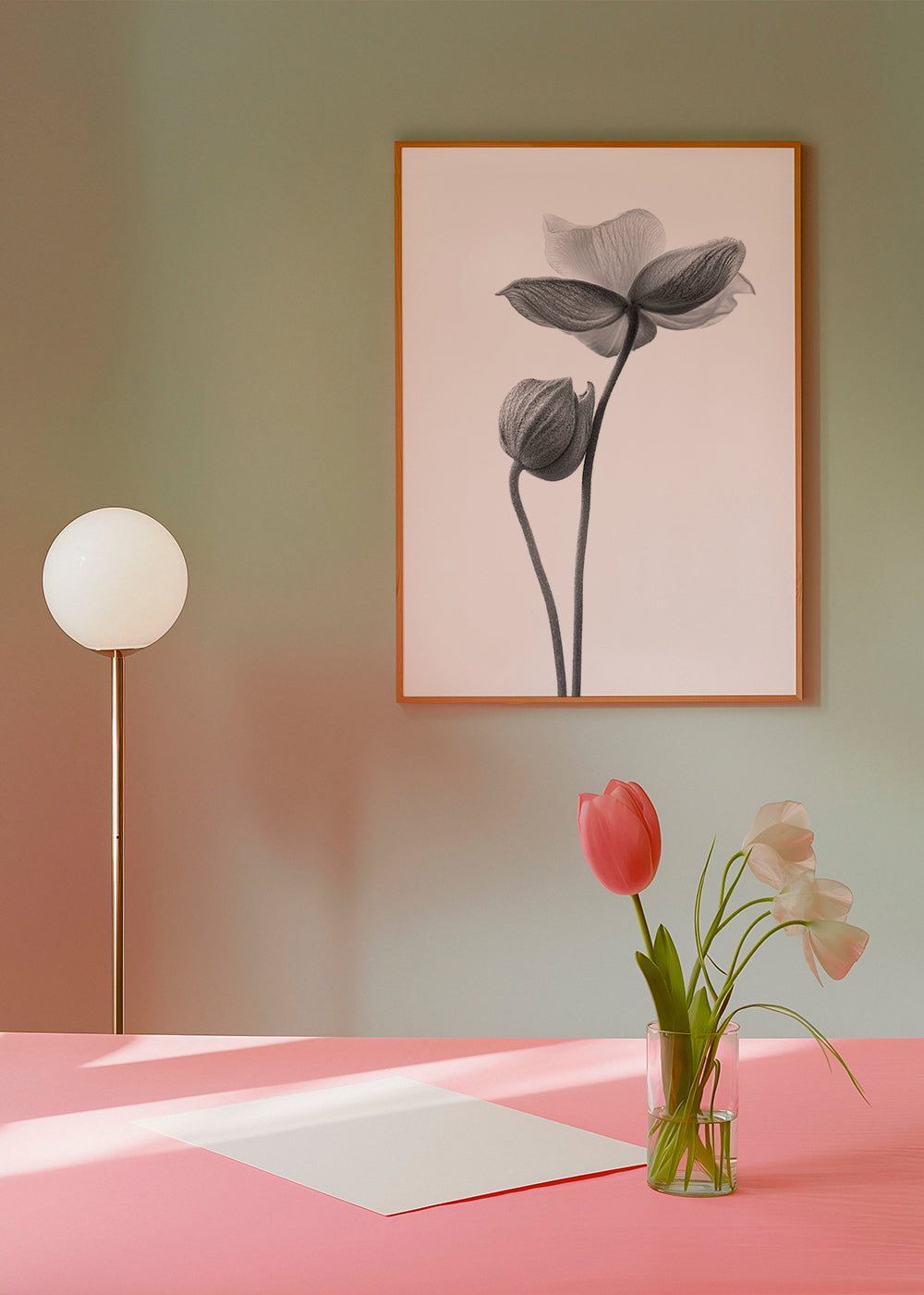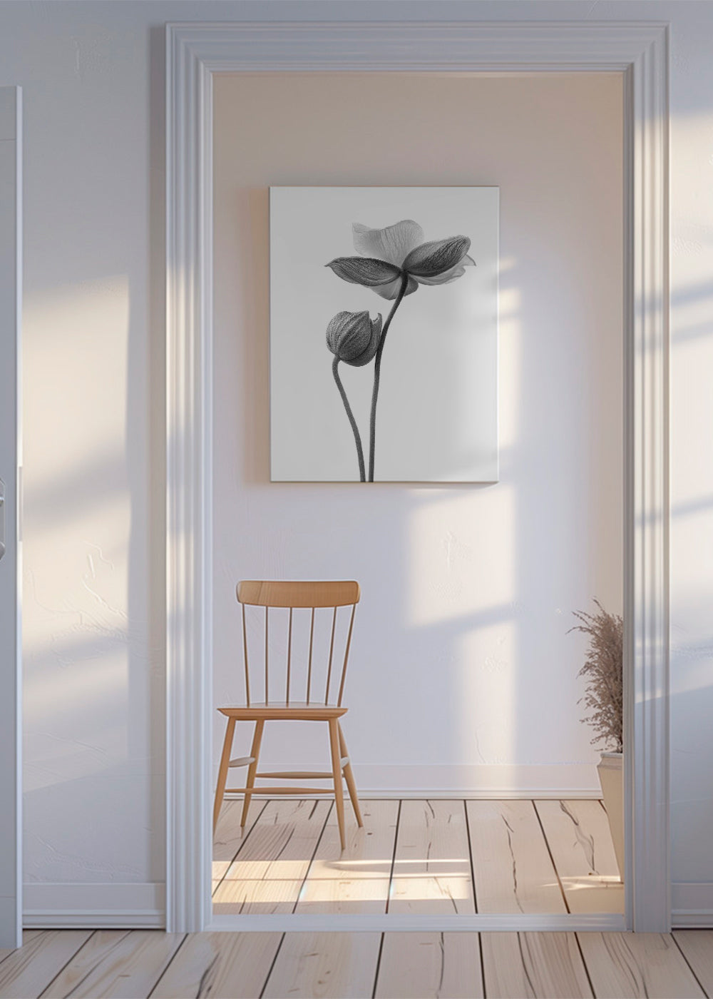 Ein Wandbild Im Stil unserer wandbilder mit blumen und pflanzen, kreiert von 1x, mit Farbverlauf Schwarz, und mit Ausrichtung Vertikal. Das Design verleiht deinem Wohnstil einen verspielten Look und lässt sich wunderbar mit anderen Blumen- und Pflanzenmotiven, sowie mit Sprüchen und Zitaten kombinieren. Es gibt weder schöne noch hässliche Wände – es gibt nur dekorierte und leere Wände.