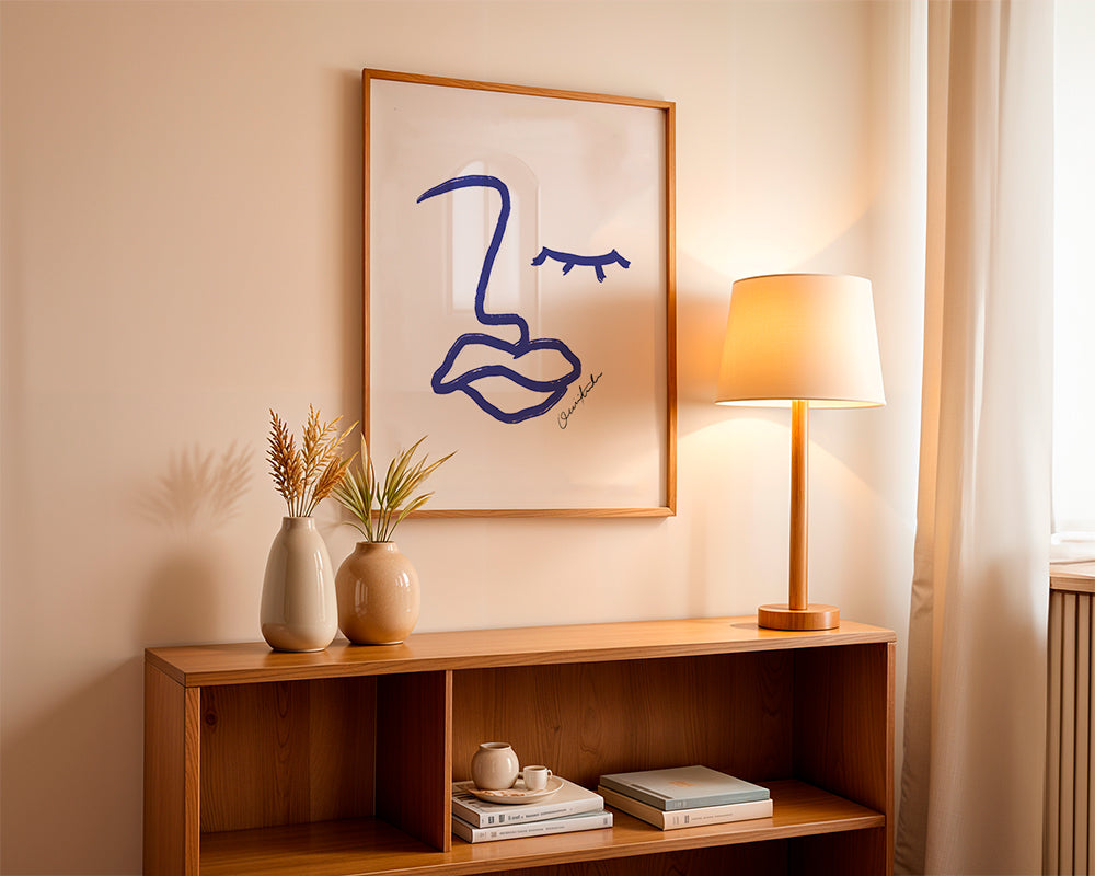 Alle unsere Rahmen werden in Spanien hergestellt. Die weißen, schwarzen und Eichenrahmen sind aus Ayous-Holz gefertigt, und die Eichenrahmen sind mit Eiche furniert, während die metallischen Rahmen aus Aluminium sind.