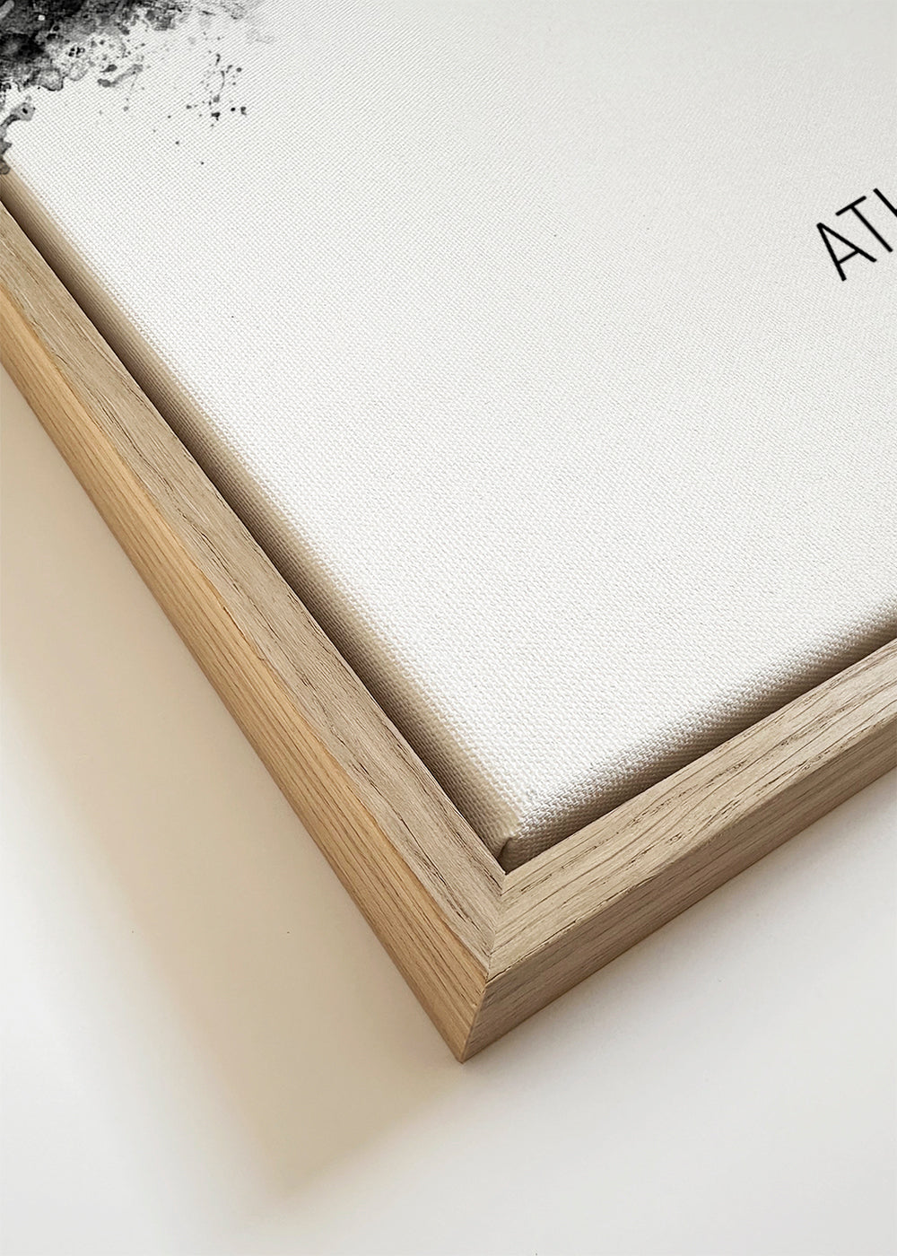 Alle unsere Rahmen werden in Spanien hergestellt. Die weißen, schwarzen und Eichenrahmen sind aus Ayous-Holz gefertigt, und die Eichenrahmen sind mit Eiche furniert, während die metallischen Rahmen aus Aluminium sind.