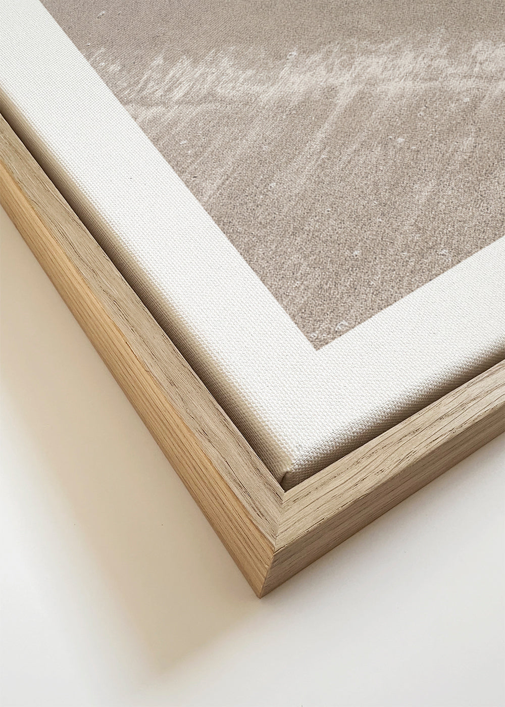Wenn Sie die Passepartout-Option wählen, fügen wir die weiße matte Platte dem Rahmen hinzu und reduzieren das Design der Arbeit. Wählen Sie beispielsweise ein Druckformat 50x70 cm, mit eichenfarbenem Rahmen und Passepartout, reduzieren wir das Design des Druckes auf das bisherige Format (40x50cm). So passt es sich perfekt an das Innenfenster des Passepartouts an.