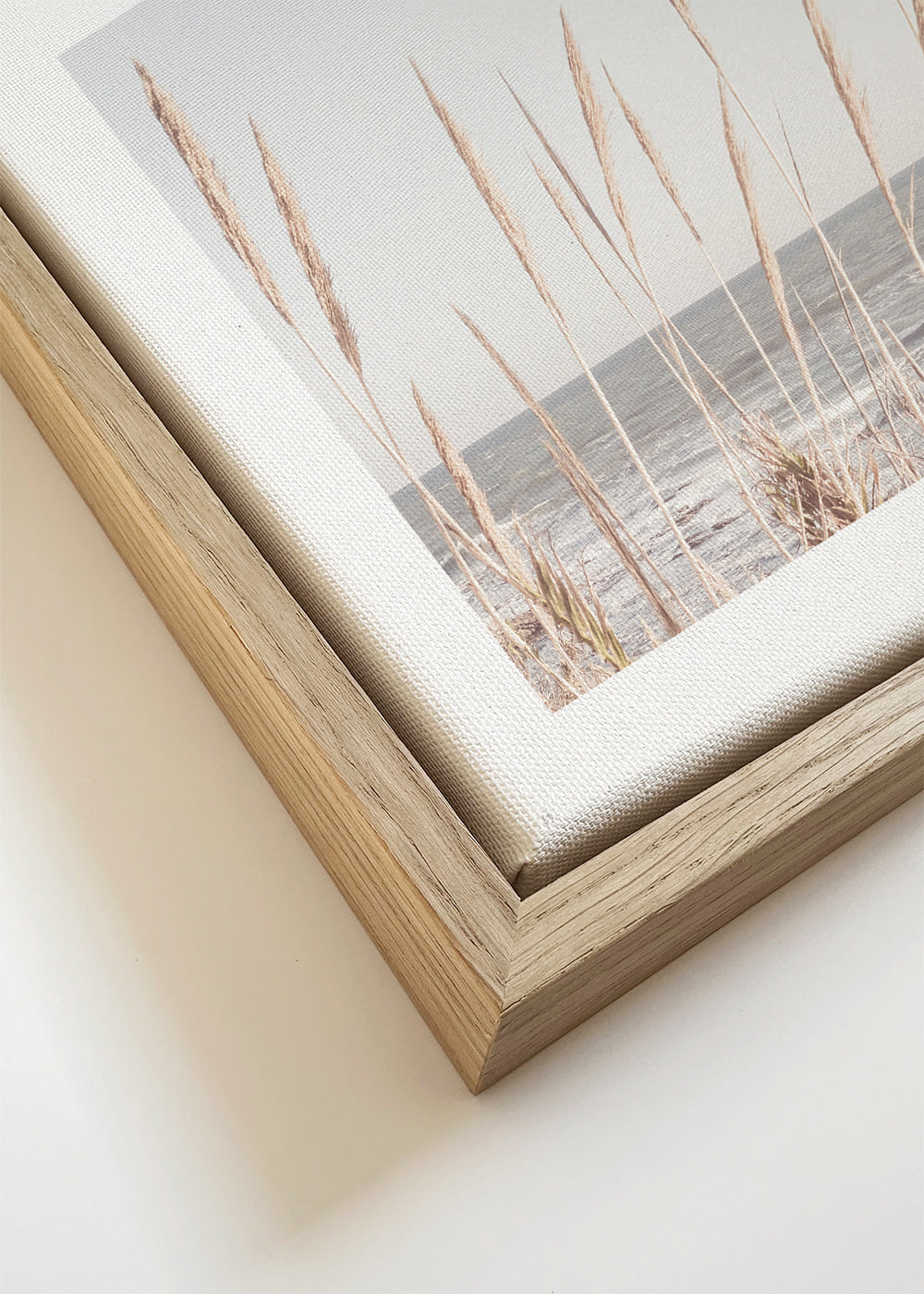 Wenn Sie die Passepartout-Option wählen, fügen wir die weiße matte Platte dem Rahmen hinzu und reduzieren das Design der Arbeit. Wählen Sie beispielsweise ein Druckformat 50x70 cm, mit eichenfarbenem Rahmen und Passepartout, reduzieren wir das Design des Druckes auf das bisherige Format (40x50cm). So passt es sich perfekt an das Innenfenster des Passepartouts an.