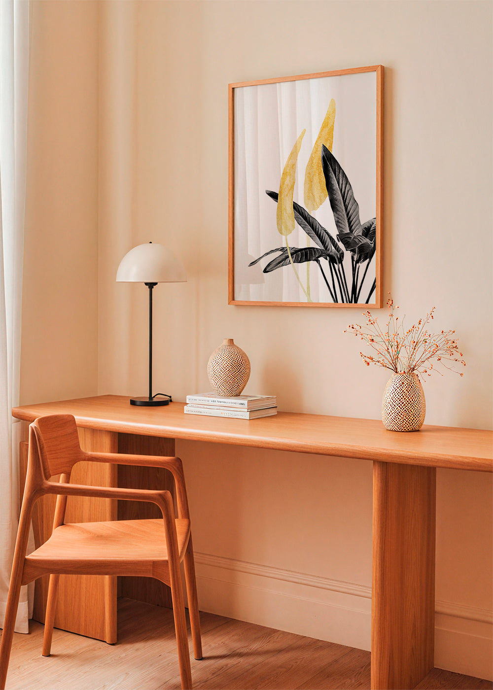 Scandi-Poster Bird of Paradise Plant Black, White and Gold 01