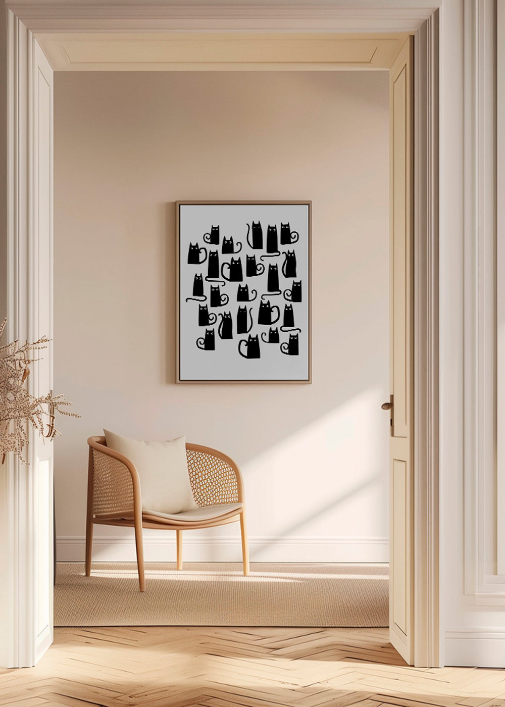 Ein Poster aus unserer Kategorie Katzengemälde des Künstlers Nic Squirrell mit monochromen Akzenten und in vertikaler Position. Dies ist ein ideales Werk für Tierliebhaber. Kombinieren Sie es mit anderen Tiergemälden, um eine wunderbare Komposition zu schaffen. Das Gemälde, auf das diese Wand wartet.