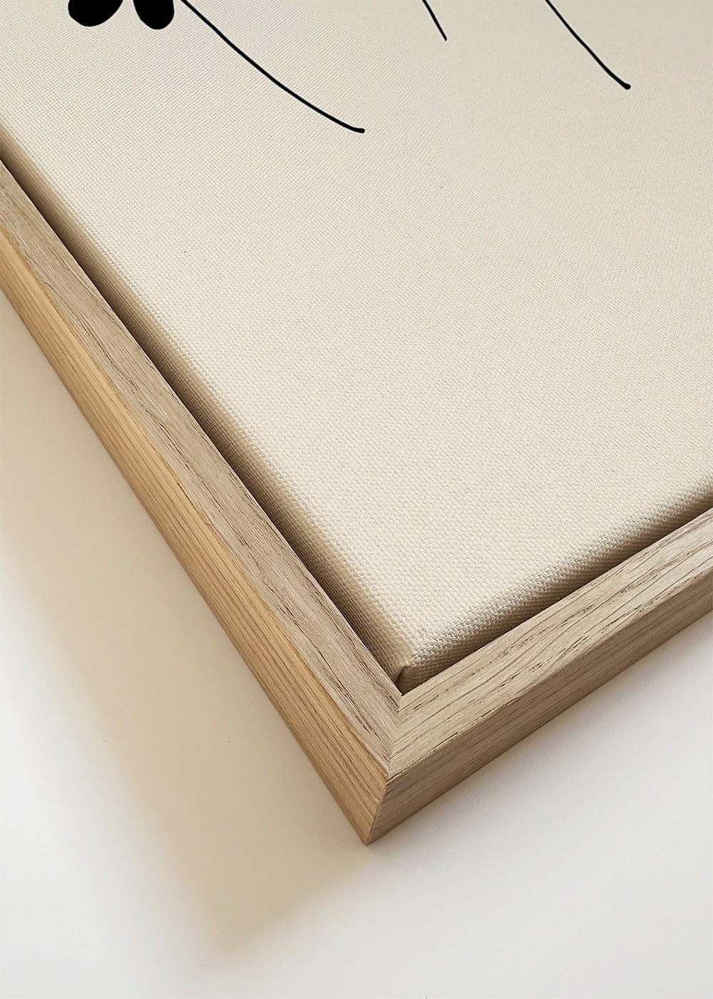Alle unsere Rahmen werden in Spanien hergestellt. Die weißen, schwarzen und Eichenrahmen sind aus Ayous-Holz gefertigt, und die Eichenrahmen sind mit Eiche furniert, während die metallischen Rahmen aus Aluminium sind.